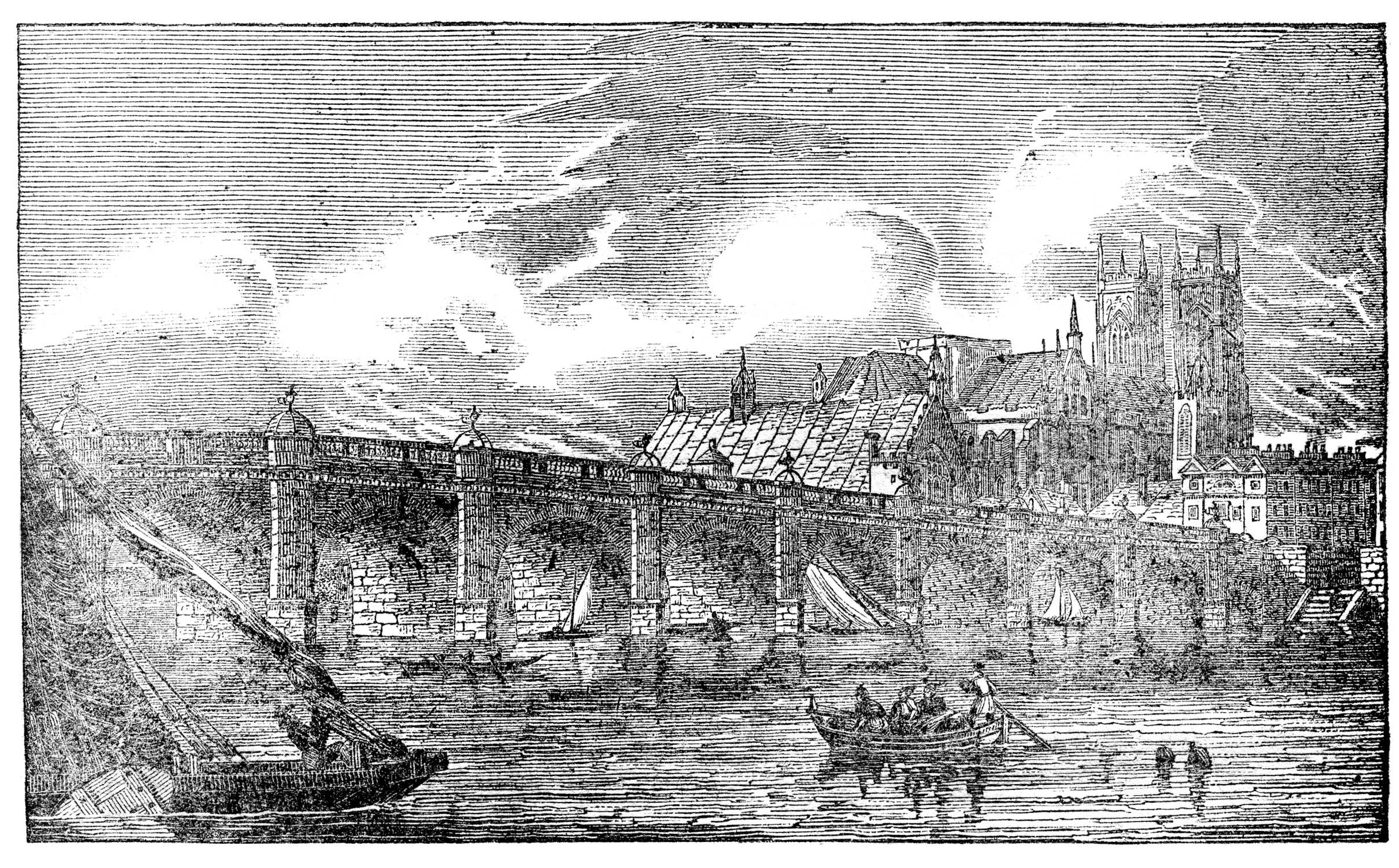 A century ago not one of the several bridges existed that now span the Thames at London. There was then, in fact, no bridge over the river at all, with the exception of that which stood where the present London bridge is now erected. It was not until the year 1735, that parliament, on the petition of the inhabitants of Westminster, passed an act for the building of a second bridge. Even then this improvement was not secured without great difficulty; a strenuous opposition being made to it by the Company of Watermen, the society called the West-Country Bargemen, the Borough of Southwark, and the City of London, all of which parties conceived themselves interested in forcing everybody who wanted to cross from one side of the water to the other, either to go round by London bridge, or to make the passage in a boat. Fortunately, however, it was determined that the convenience of the whole population should not be sacrificed, nor their personal safety placed in jeopardy, on this monstrous demand of a few individuals.