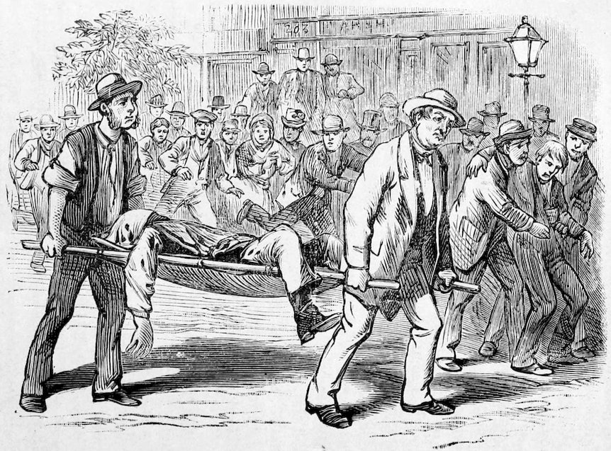 The casualties by Wednesday night’s riot, were as follows: Herman Gudewell, Assistant note teller of the London and San Francisco Bank, shot while in charge of the vigilantes, of which he was a member, died soon after; Officers Wilson, Smith and Morehouse, wounded by stones, not dangerously; Officers Parsons and Pomroy, pistol shots in head and leg, respectively, not serious; J. K. Conolly, driver of No. 1 hose-cart, shot in the leg by a rioter; Samuel Scronse, on a cart with Conolly, was shot by the mob, fireman of No. 3 hose, struck by a stone in the face, and severely hurt; Joseph Wentworth, fatally injured and leg broken; Henry Washer, killed by a hose-cart on Pacific street, near Stockton; Thomas Baxter, a boiler maker, shot in the chest, near the mail dock, and subsequently died; James Miller, shot in the head while leading in the riot; two hoodlums, Railey and Thompson, shot on Rincon Hill, both of whom afterwards died; a rioter named Carr, dangerously wounded; Hayes, another of the mob, shot in the knee. A great number of the Committee and police were more or less hurt by stones thrown, and many of the rioters were severely clubbed, and it is believed quite a number were wounded by 425pistol shots, whose names and extent of injuries were not ascertained.