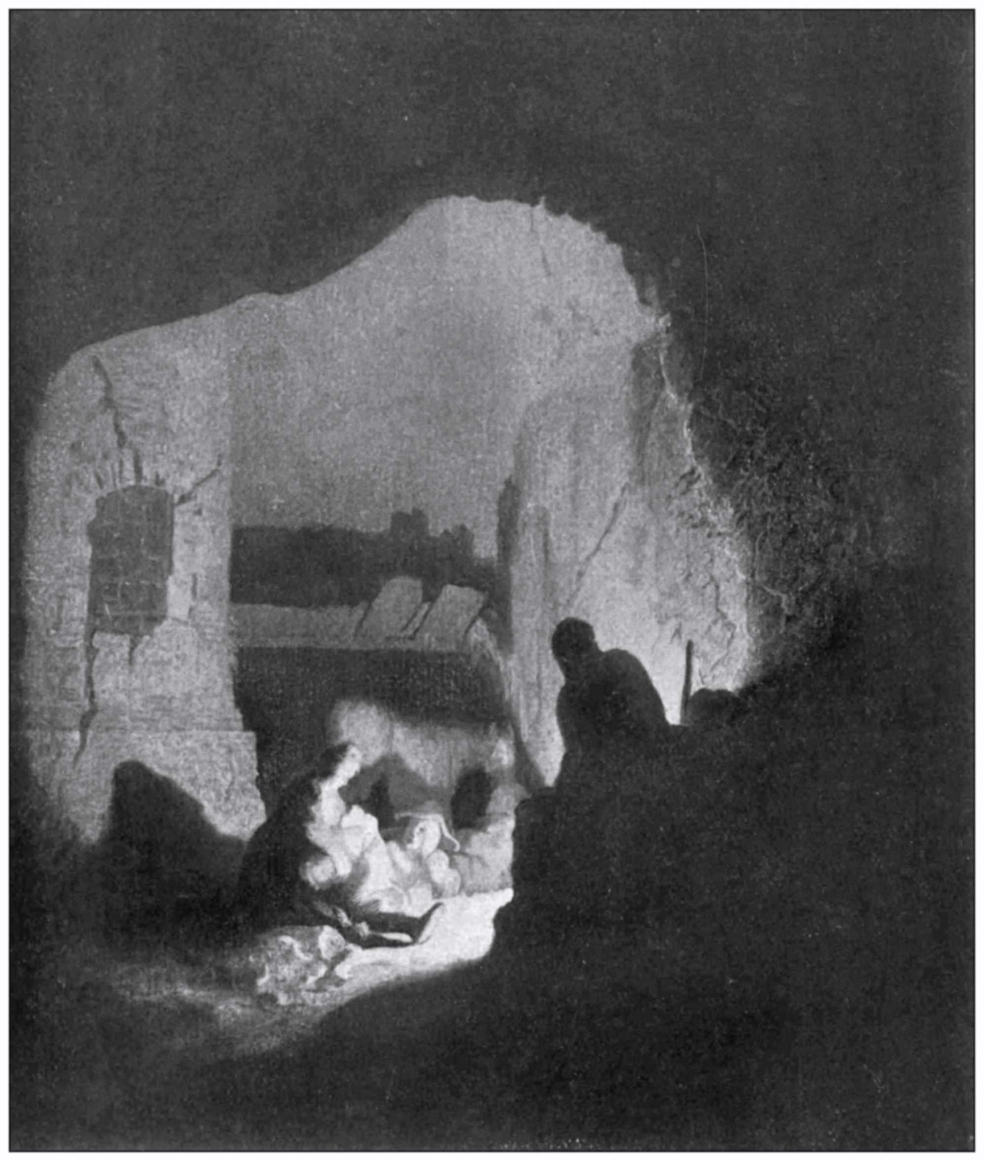 This is, to my mind, one of his most beautiful works. If we look at it long enough to get beyond the paint, we find ourselves in the stable, taking part in the scene, with the shepherds; we seem even to know them well. The lighting, expression, gesture, and sentiment in this work are all natural and true; and the picture in the Wallace Collection, the “Unmerciful Servant,” with the figures starting out of the deep background, is also an instance of his lighting, or conceiving a picture so as—unconsciously, it seems—to emphasise the dramatic element in the story.