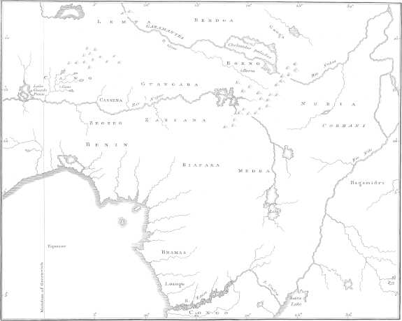 The vessel in which I am making my passage to England having been chartered to trade in the River Gaboon, which is immediately on the Line, I diverted a tedious delay of seven weeks in so[vi] unhealthy a situation, by visiting Naängo, a town about fifty miles from the mouth of the River, where I collected Geographical Accounts of the Interior, from several intelligent traders, and numerous slaves from different countries. I have added this compilation, (as it may borrow some interest from the adjacency of the Congo,) with a few notices of the customs and productions of this ruder part of Africa.