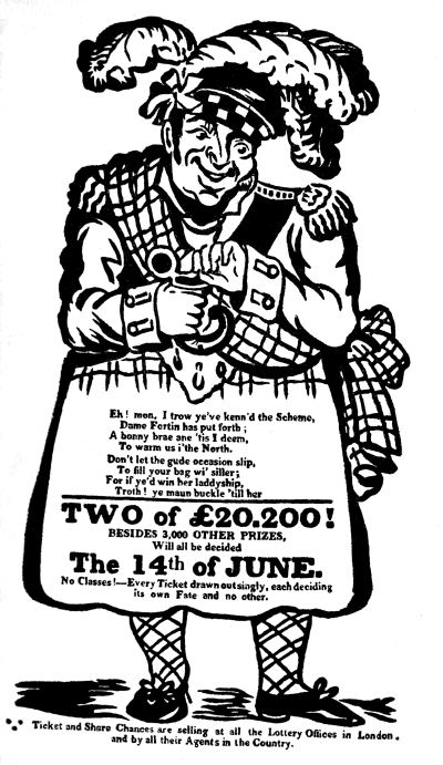 The lottery wheels—Anecdotes connected with the lottery—The Glasgow lotteries—Advertising foreign lotteries—“Art Union” Act—Dethier’s “Twelfth Cake Lottery”—Tontines—Raffling—Pious lotteries—Sweet-stuff lotteries for children— Hamburg lotteries