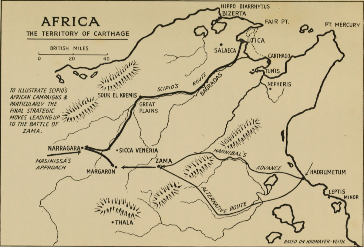 Thus by diplomacy Africanus secured his lines of communication and released his army; the determination with which he sought a peaceful solution, and avoided being embroiled in a sideshow, is an object-lesson in economy of force and the maintenance of the true objective.