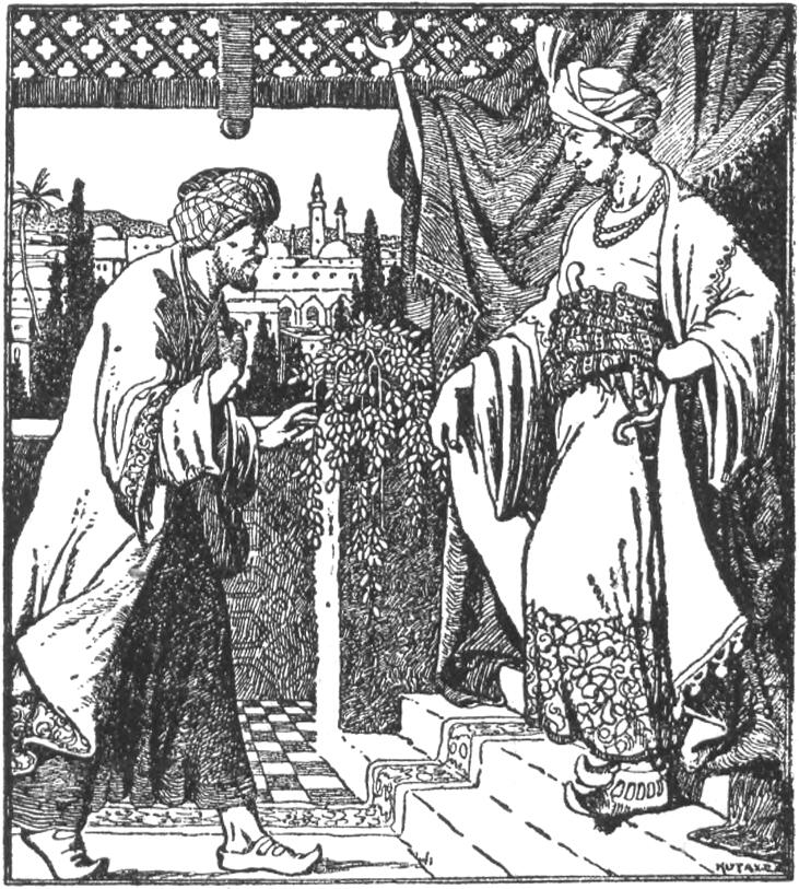 – Isten hozott, – üdvözölte őket Szobeida, – de ne vegyétek rossz néven, ha valamire figyelmeztetlek. Bármit láttok és hallotok itt, nem szabad kérdeznetek az okát és nem szabad beszélnetek oly dolgokról, amihez nincs közötök.