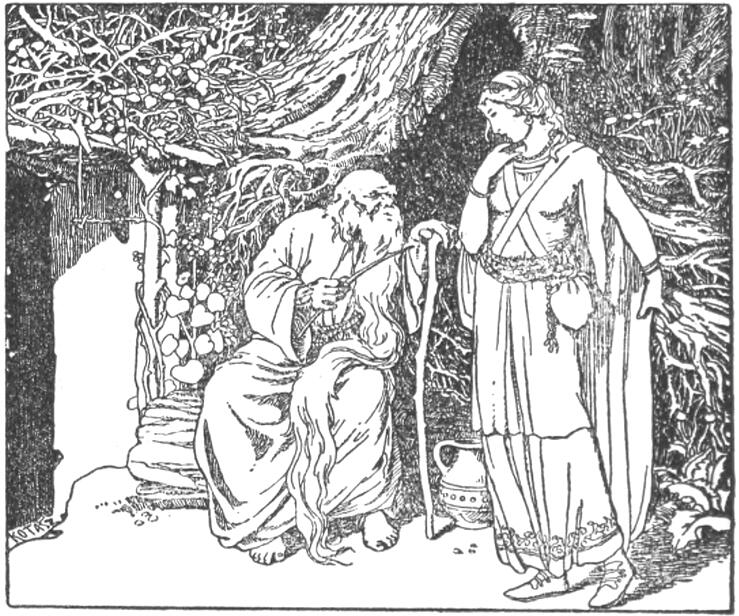 Egy reggel, amint kosarával a piacon álldogált, gyönyörű szép termetű, selyem fátyolos nő lépett hozzá s mondta nyájasan:
