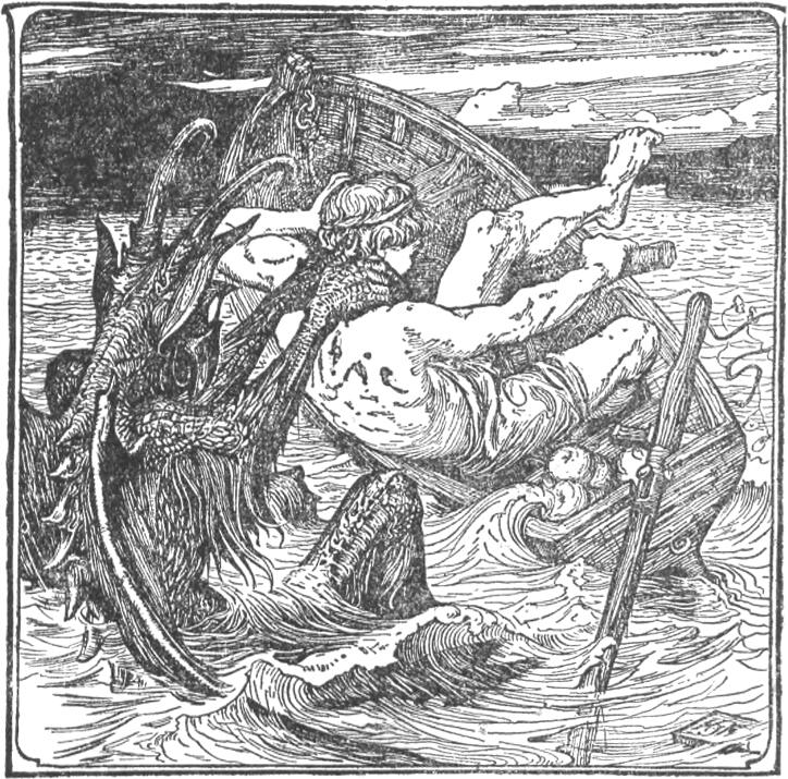 Adott mindent szívesen a gazda, hogyne adott volna, csakhogy többet ne lássa Jánost. Amikor szépen mindent felpakoltak neki, fogta a vasbotját, amit -307- még otthonról hozott, s elindult az Ördög-tavához. Nemsokára odaért, beleült a csolnakba, s evezett csendesen a tó közepe felé. Ott aztán megpihent, leeresztette az evezőt, s nekiállott a falatozásnak, mert erősen megéhezett. De bizony alig ette meg az első kenyeret, elkezdett hullámzani az Ördög-tava, kiszökött belőle az Öreg Erik, s nagy haraggal megragadta Jánosnak a nyakát hátulról, s húzta belé a vízbe. Hej, most már János is azt hitte, hogy ez az utolsó -308- napja, de gondolta, nem hagyja magát halálig, megfogta a nagy vasbotot, s hátrafelé olyat sujtott az Öreg Erik fejére, hogy az csak eleresztette a nyakát, s nyögni, rimánkodni kezdett az életéért. Jól elrakta János a vasbottal, mikor aztán ő maga is megelégelte a dolgot, kérdezte tőle: