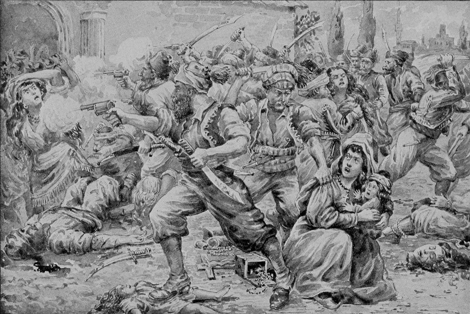 The cruelty towards priests and women, the two non-combatant classes, has been bitterest of all. Because the priest represented the detested religion of Christ, he has been not only slain but mutilated, and the sign of the cross cut in his forehead by murderous swords, and because Mohammedans believe before all things in the harem rather than the home, a brutal soldiery has spared neither the wife, the mother, nor the babe unborn. Outrages worse than death have been endured by women, always preceded by the promise that they would be spared if they would abjure their faith, but in no instance have they hesitated to face their double agony rather than disclaim allegiance to the Cross.