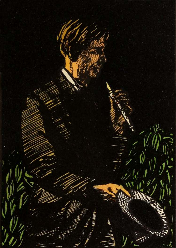 He stared at it, put it to his lips, and, fingering the stops and keys, began to play, without premeditated act of volition, an extraordinary air. But after a few phrases he leaped to his feet in a shiver of fright, dropping the flageolet on the grass. How had this Puckish melody come into his head?