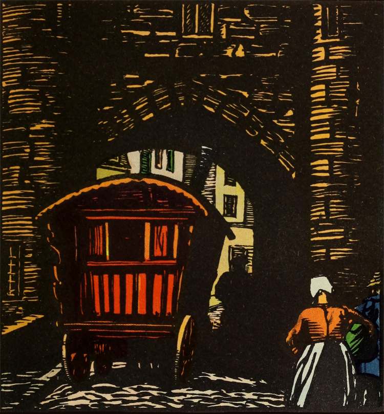 He repeated the final quatrain two or three times, enjoying its flavour. Then, suddenly, inspired with new strength and purpose, he jumped to the ground, harnessed the horse to the caravan, and started down the moonlit avenue to the town of Chartres. But he did not stay at the fair-ground. He passed through and, casting a humorous glance at the yellow-and-red-striped caravan in which the vivid girl lay presumably asleep, blew a kiss to her with his fingers, as to a symbol, and made his slow progress through the narrow streets of the sleeping city.