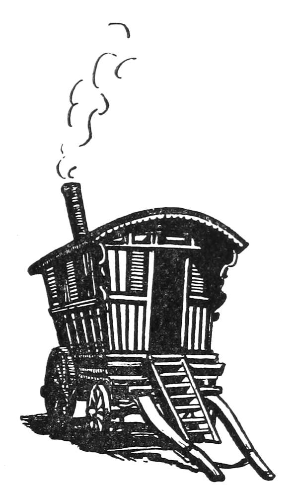 He descended the three steps, recognized that what he [Pg 6]had taken for a ship was but a sort of gipsy caravan, and that the noise was made by a tethered horse comfortably munching the wayside grass.