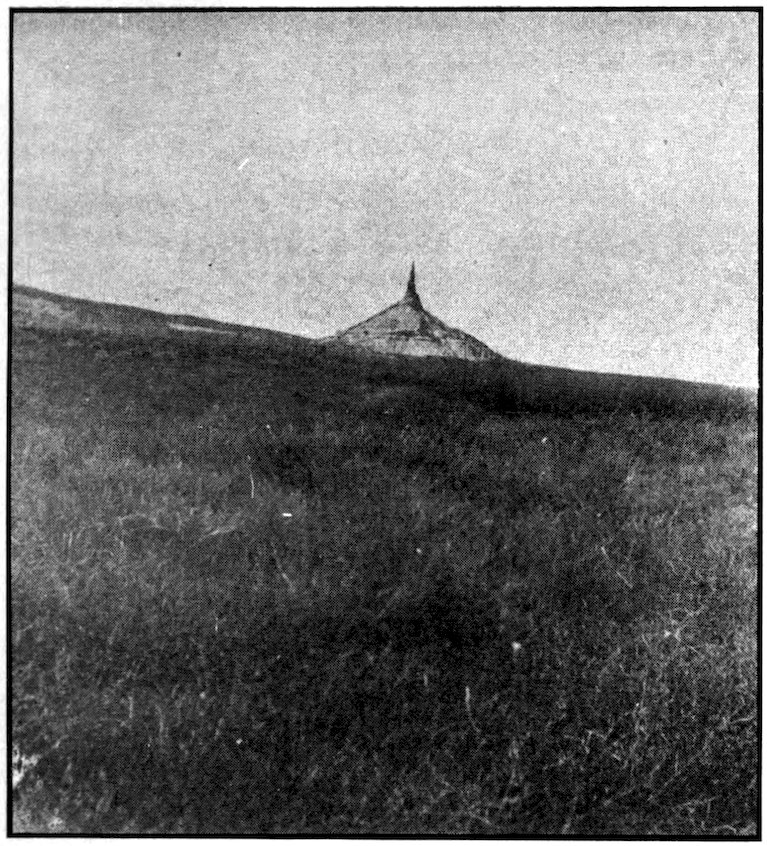 Their route had no rich diversity of scenic grandeur. There are most impressive natural features along the line of it, but with their slow mode of travel one phase became exceedingly monotonous before another was 369reached. There were the vastness and solitude of the prairies and plains, the transparency of the atmosphere that gave magnificent sweep of view. Along the North Fork of the Platte stood great sentinel rocks with interesting sculptured proportions. Among these are the Lone or Court House Rock, Chimney Rock, Castle Rock, Steamboat Rock, and Scott’s Bluff. Farther along on their journey they come to Independence Rock and Devil’s Gate on the Sweetwater, one a huge basaltic mound upon which with tar or with iron chisels they would register their names; the other a most unique breach in a granitic range with sides two hundred feet high, through which the Sweetwater flows. A week or two later they would have the exhilarating sense of standing on the backbone of the continent in South Pass, with the towering Wind River Mountains to their right and the Oregon buttes to their left. A few miles on they would drink from the Pacific springs and know they were in what was then called Oregon. Scenery most unique was still before them on their way. Some of it, like the panorama from the divide between the Green and the Bear rivers and the Soda Springs, they would enjoy. But their march from the South Pass on was a retreat. Oxen would fall helpless in their yokes, wagons would become rickety beyond repair. The trail was strewn with wreckage, and the stench from the dead cattle was appalling. The watering places along the Snake were contaminated by the stock that had perished. As soon as they reached the Blue Mountains their stock was safe from starvation, but the exertion required of their way-worn and weak oxen on the steep grades now before them was the last straw often that these creatures now could not bear. They could not let them recruit; the season was far advanced towards winter; they must press on.