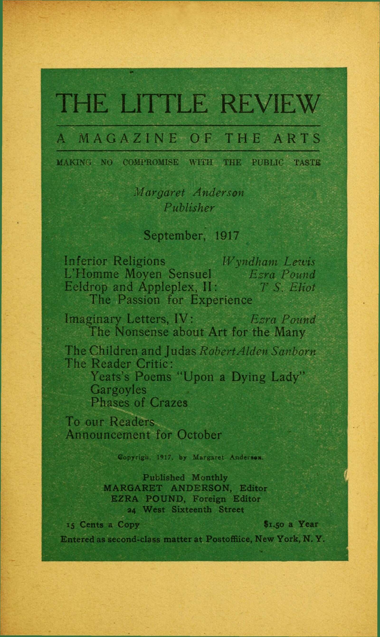 Title: The Little Review, September 1917 (Vol. 4, No. 5)