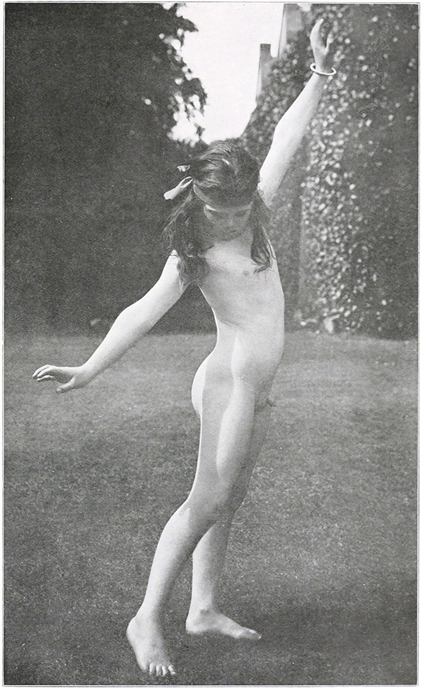 I do not think I ever realised fully the extreme impurity that is rife through the minds particularly of those who live in towns until I went on to the stage, and took up classical dancing seriously. Then there used to pour in upon me a stream of letters of such a terrible kind that one wondered it were possible for any living being who had a soul to write such things, and in those days came to me a great and sincere wish to help on in any way possible the work of trying to establish a system of Physical and Mental Culture that should give the children their fair chance in life; for rich and poor there ought to be but one system, and that instilled in a manner to give to them a knowledge and reverent love of all that is God’s work, to bring within the reach of all the chance to keep the body beautiful outwardly and clean [Pg 16]inwardly, and to fill the mind with high ideals and a fine knowledge of men and books. May we all try and make it more possible and easier for the little children to walk with firm and unfaltering footsteps the path that ours have tottered so painfully along.