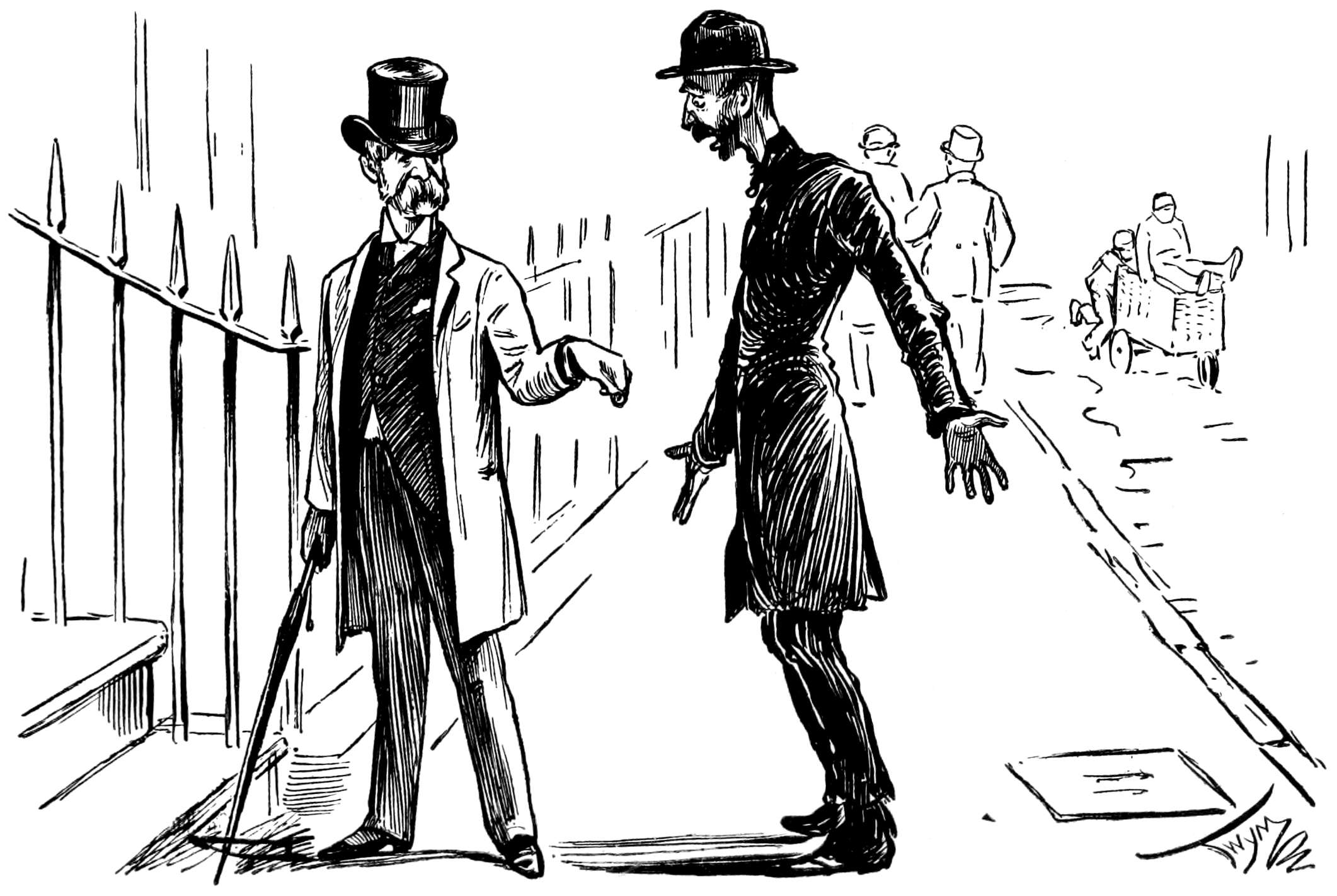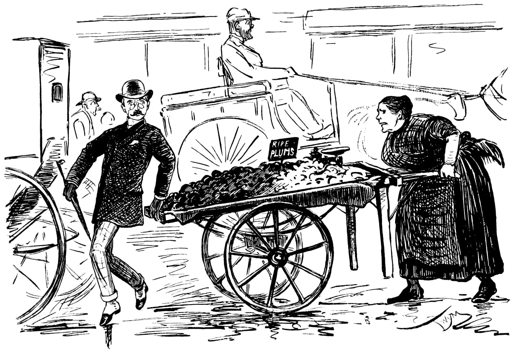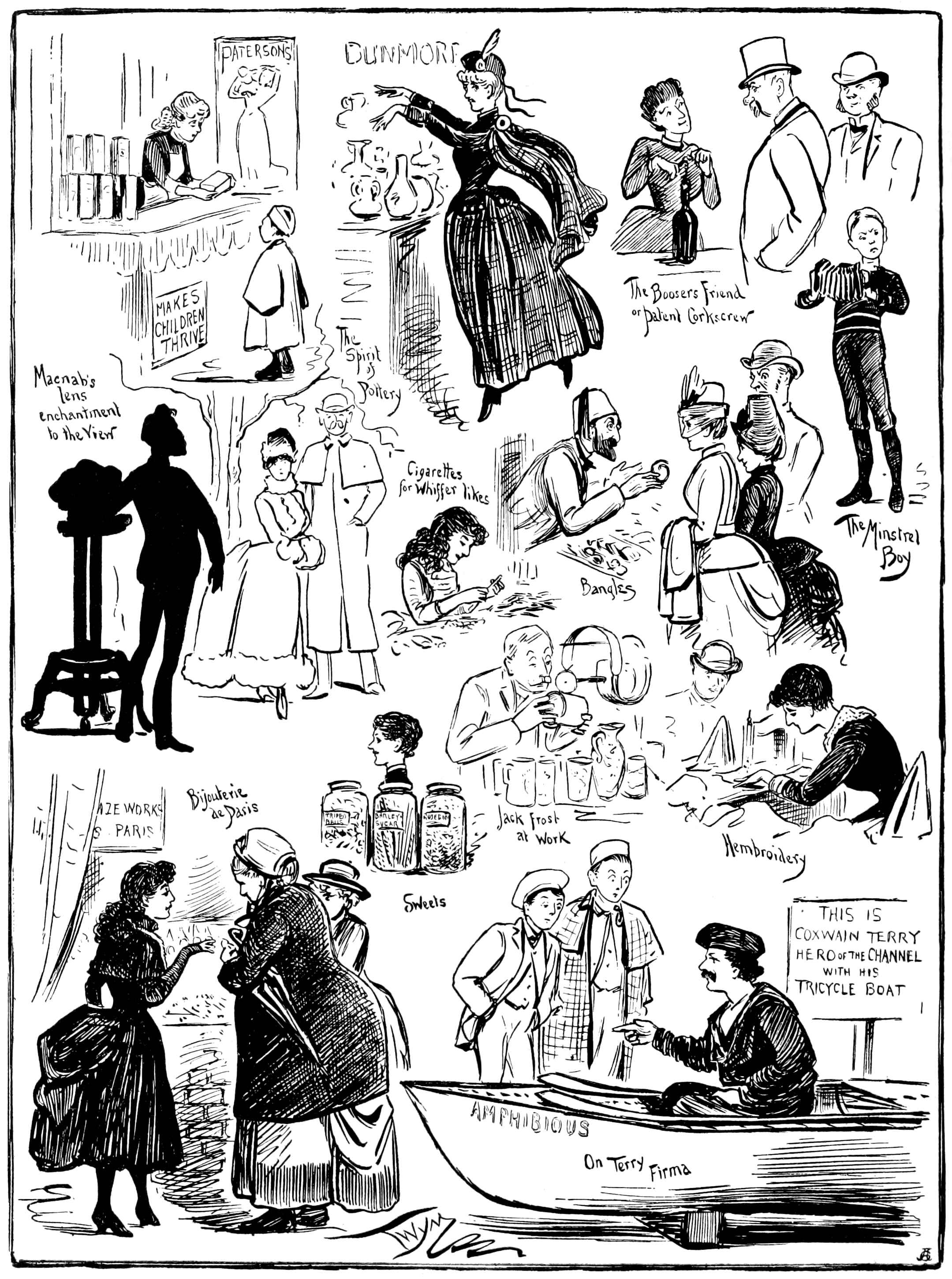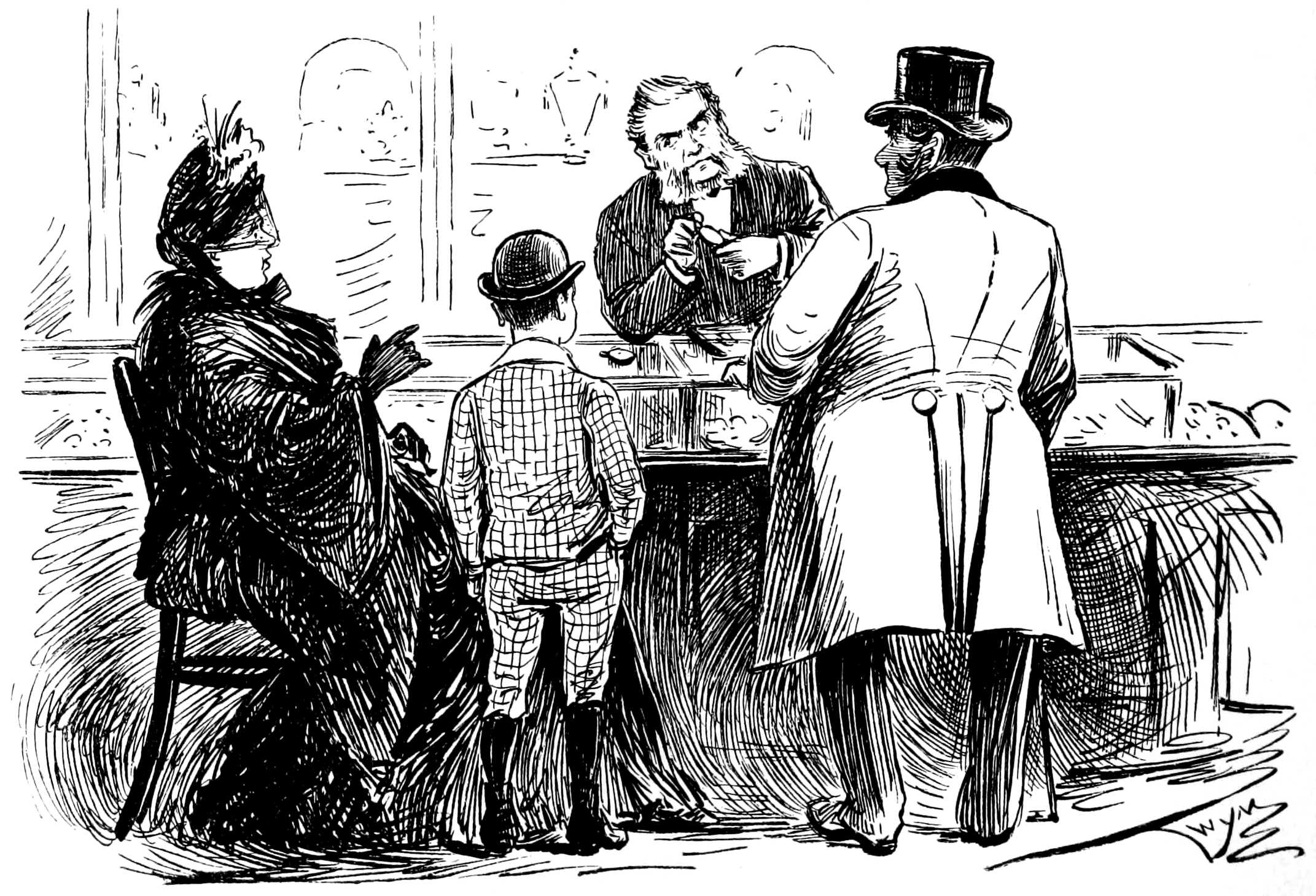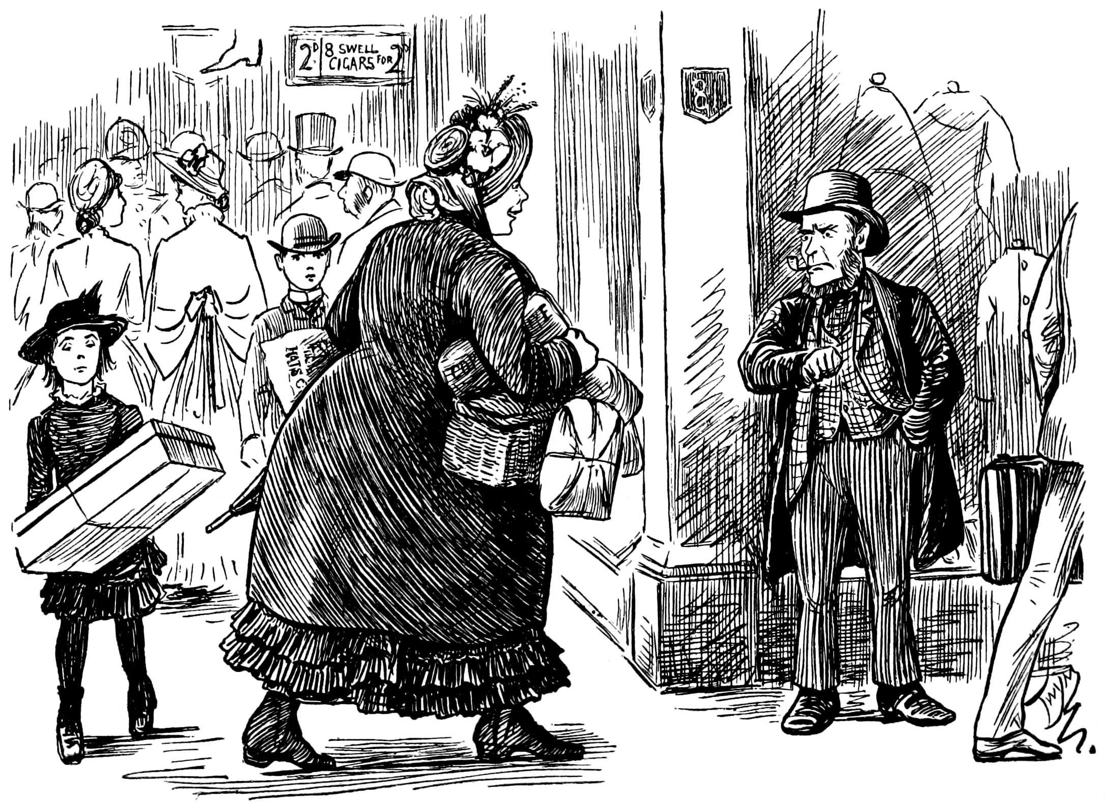 —“Vants any books or shoes or shplendit pictures, leddy?”