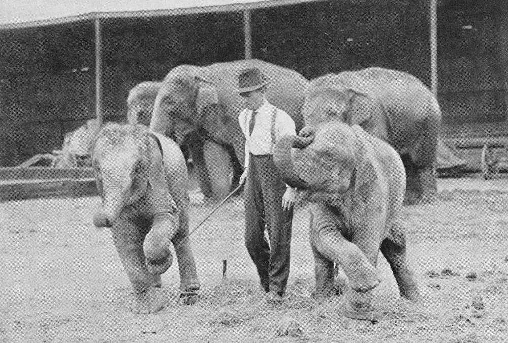 Quickly the burning flat car was “spotted” with the rest of the train safe on each side. Men, wrapped in wet canvas, struggled forward against the heat to “lasso” the whole burning mass with the cables. Out came the work elephants, their pulling harness slapping about their shoulders as they were shunted into position. One by one they were hooked to the cables. Bull-hooks gleamed in [Pg 236]the red light as the elephant men urged their beasts forward, straining against the taut strands of steel. A moment of racking labor, then a crashing roar as the blazing car tumbled down the embankment, its sparks and embers scattering, its flare becoming greater than ever. And there we left it, ten thousand dollars’ worth of lost effort, blazing away, as we went on, minus one side-show, two parade wagons and a flat car. But the crowds which lined the streets in Phoenix the next day and grumbled because the parade was an hour late did not, could not know the reason, and it is a part of circus ethics to keep one’s troubles to oneself.