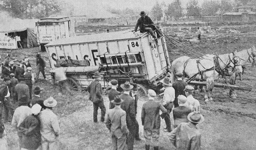 As evidence: It was late in the summer of 1915 that I sat in the rickety, wobbling caboose of a local freight train on a corkscrew railroad in eastern Kansas. In all my railroading I had never struck rougher riding; it seemed constantly that the slow-running train must leave the rails, even at its “speed” of less than five miles an hour. I was ahead of my show—Sells Floto—and a week later the long, heavily loaded trains of the circus must make this route, if it lived up to its billing. I sought the engineer.