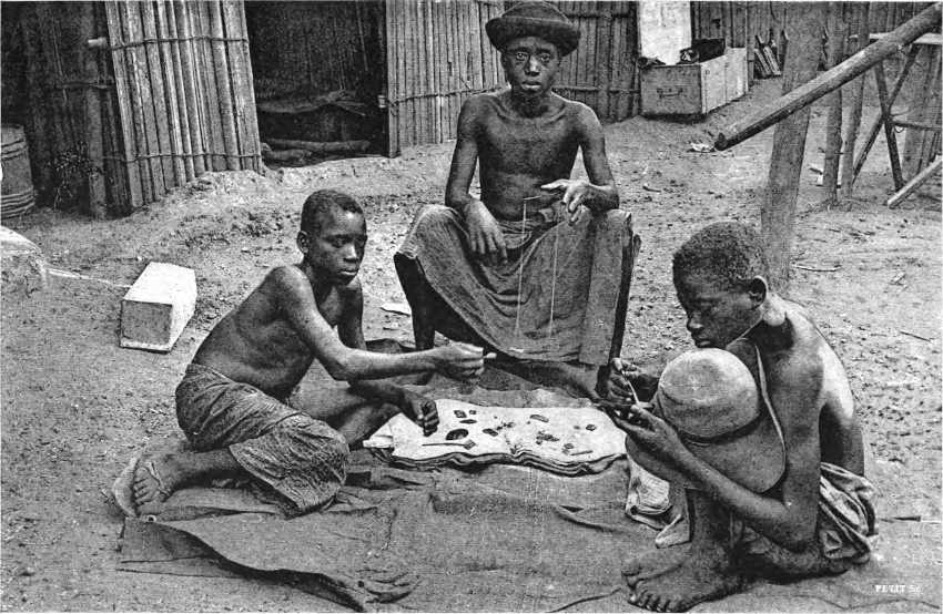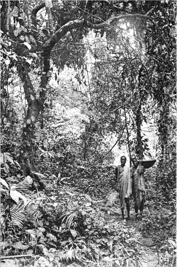 Sentier de forêt dans l’Indénié. Indigènes allant laver la terre aurifère 142