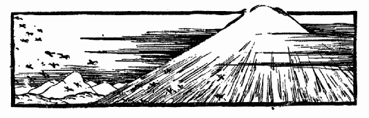 Sur cette tristesse générale, le Fugi-No-Yama lui-même, sommet du globe terrestre, voilait souvent sa cime étincelante, sacrée. Le prodigieux lotus aux huit pétales sans tache avait cessé de s’épanouir. Des treize provinces de l’Empire dont il était la parure, la joie, le symbole et la protection, il survenait de longs jours où nul ne le distinguait plus. Personne, dans la nécessité de la lutte quotidienne, sauf à de rares instants, n’invoquait sa force tutélaire. Les milliers et les milliers de pèlerins d’autrefois ne se dirigeaient plus vers lui pour y porter une fois l’an, selon l’usage, leurs prières rythmées. Le mont divin se vengeait ainsi d’avoir cessé d’être le lieu central de l’union parfaite où toutes les croyances de toutes les confessions se conciliaient à son abri vers le même culte de l’astre solaire et de la patrie, car il n’est en réalité qu’un seul culte à travers le monde sous les apparences diverses ou les noms opposés, en dépit de leurs hostilités mêmes, et suivant le vers fameux du poème révélé en songe à l’empereur Séiwa, les Dieux siègent dans le cœur de l’homme. La déesse du Feu, qui fait éclore les fleurs, s’était envolée de ses mystères et les fervents qui se prosternaient devant Ko-no-hana-saku-yia-himé, disséminés au hasard ou tués aussi, ne pouvaient célébrer la dynastie des Maîtres suprêmes. Le Fugi, pointu sur les dix cercles qui mènent à son sommet, n’était plus le lotus unique, la fleur excellente, close sur son cœur ou l’ouvrant sur le monde, dont les huit pétales correspondent aux huit vertus dispensatrices de la sérénité profonde, et il se dressait, nu, vers le ciel muet comme pour implorer, malgré tout, le mystère insondable de l’espace, autel de la Nature, sans prêtres, bientôt sans peuple. Seul l’orage se faisait entendre en plusieurs nuits pesantes autour de sa majesté ; la foudre qui diminuait le scintillement des étoiles l’entourait alors d’un halo d’éclairs qui rendait la neige irréelle et spectrale.