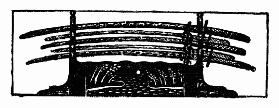 Alors Omoï-Kané-no-Kami prit deux morceaux de bois de fer, et les frappant l’un contre l’autre, en tira une suite de sons ; ils se succédaient au milieu des éclairs qui partaient du bois heurté, zigzaguant à travers l’assemblée auguste. Assis au-dessus d’elle sur une branche de l’Arbre vénérable, il atteignit, dans l’imagination des Dieux, l’aspect d’un nouveau maître de la foudre.