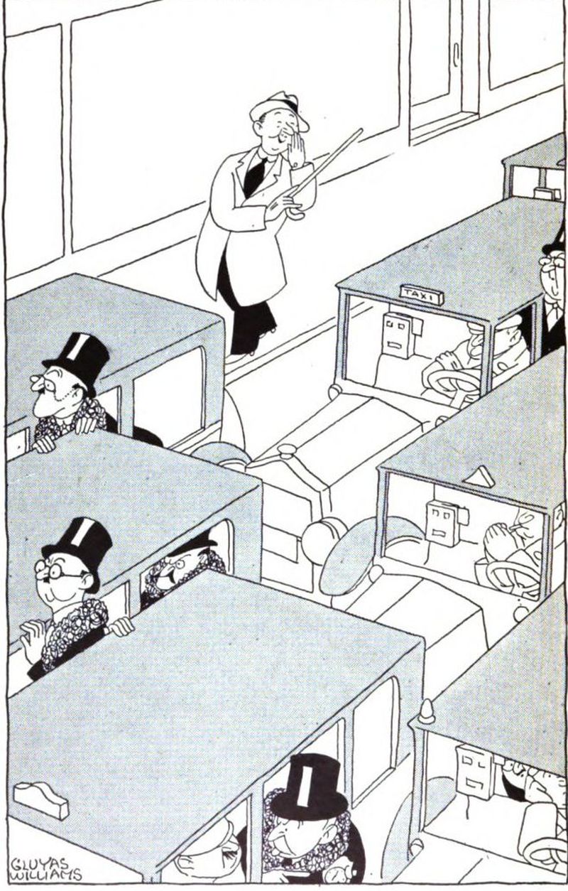 Your investigator was not asked by the authorities to make this tour of inspection, but somebody from the New York Times went through the thing and wrote a story about it; so there didn’t seem to be any good reason why a reporter from The New Yorker shouldn’t. Not having the permission of the tunnel authorities, he went alone into this vast-two-mile submarine passageway, with the result that he got lost and is still in there. This story is being sent out to The New Yorker by a code of tappings executed on the roof of the giant shell by the lost [Pg 242]investigator. As soon as he finishes sending in copy (which will be relayed to the publication offices by a special tugboat and automobile service) the reporter will turn his energies again to the problem of getting out of the tube. After all, there are only two ways possible in which to go; so it ought not to be very difficult. The big problem comes in trying to decide which way to take.
