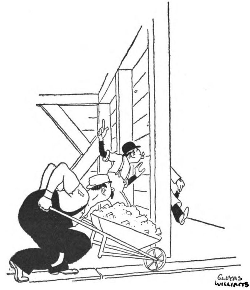For several years now, ever since they began tearing down most of the buildings in New York and erecting others in their places to be torn down next year, pedestrians have been practically excluded from the use of their sidewalks. On each corner, and in the middle of each block, it has been necessary to tunnel through great wooden passageways, dodging avalanches of bricks on one side and workmen darting out from clammy recesses with wheelbarrows of mortar on the other. These workmen have a system whereby they lie in wait in the ground floor of the new building, each with a wheelbarrow full of unpleasant material poised ready, until you and I are directly upon the plank which slopes across the sidewalk to the waiting truck. Then, at [Pg 10]a signal from the boss, they charge out directly in your path, shouting the Fascist war cry and scraping the buttons off your waistcoat. At the same moment a landslide of gravel is let loose from the fifth floor [Pg 11]crashing on top of the flimsy structure over your head and sending through a blinding shower of fine white powder which stirs up all that old catarrhal trouble which the doctor has assured you will cause your death one day.