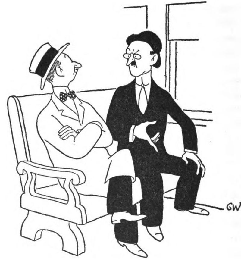 All of which brings us to the point of wondering if it all isn’t a gigantic hoax. If the specialists fall down on trap-shooting, they are going to begin to doubt the whole structure which they have erected, and before long there is going to be a reaction which will take the form of an absolute negation of sex. An Austrian scientist has already come out with the announcement that there is no such thing as a hundred per cent male or a hundred per cent female. If this is true, it is really a big step forward. It is going to throw a lot of people out of work, but think of the money that will be saved!