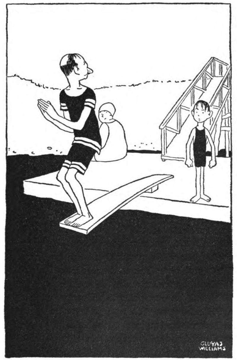 But to get back to the tunnel—or rather to get out of the tunnel. Sneaking in by the entrance at Canal Street, Manhattan, I made my way through the tiled passageway for what must have been a mile before I realized that, really, when you have seen the first hundred feet of a vehicular tunnel you have seen all 9250. I had got the idea by then. The next problem was whether to go on ahead to the Jersey City exit or turn and go back to Canal Street. Not knowing how far I had come, I couldn’t figure out which way would be the shorter. Then, in turning around several times to see if I could make out any[Pg 243] light at either end, I forgot which was the way to New York and which the way to Jersey City. This was quite terrifying and I began to cry softly. I [Pg 244]made frantic little starts, first in one direction and then in the other, and finally sat down on the ground and sobbed myself to sleep.