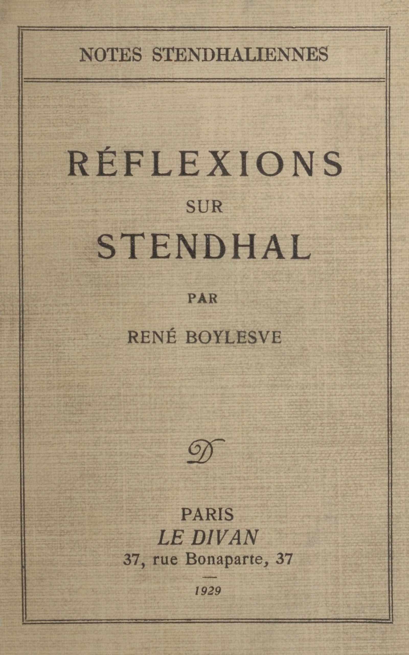 Title: Réflexions sur Stendhal