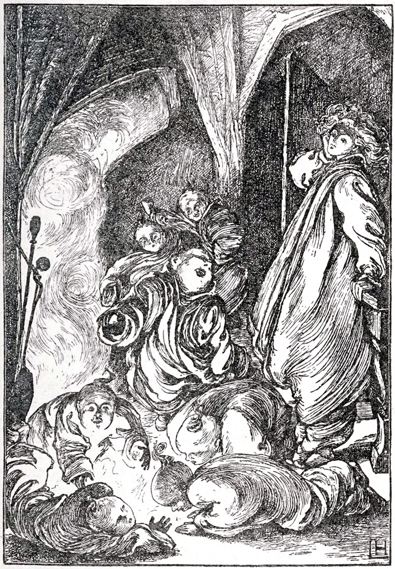 Later, in the middle of the night, the partner went away, carrying with him all the gold that the little marionettes had earned by their deaths. And these, indeed, he left, seeing that they were useless any more. But to Killian, when he woke the next morning, they were the only things left him in the world, to take back to Grendel.