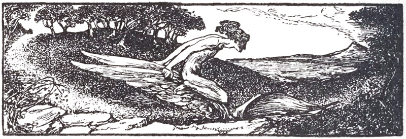 When the blue moon had set below the sea, then far behind them upon the land they had left the leaves rustled and drew sharply together, shuddering to get rid of the stony stillness, and the magic hues in which they had been dyed; and again the nightingale broke out into passionate triumph and complaint.