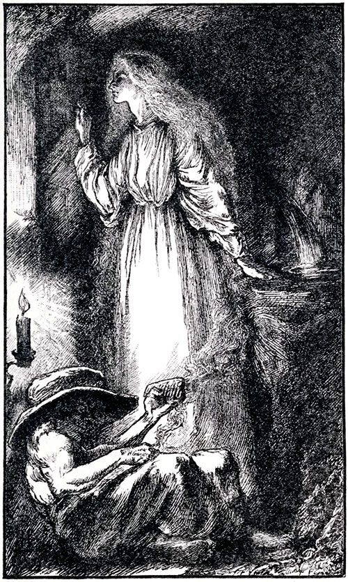 He reached up his two arms, and laid them fast round the queen’s neck. “Now at last she knows that I have not left off loving her.” He felt her drawing herself away, he held her more and more tightly to his breast; and now her little face lay close against his. Nothing can take her away from him now!