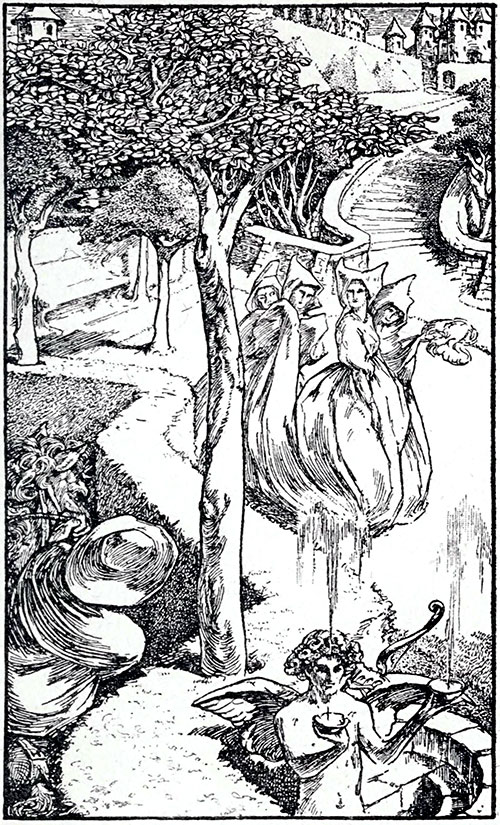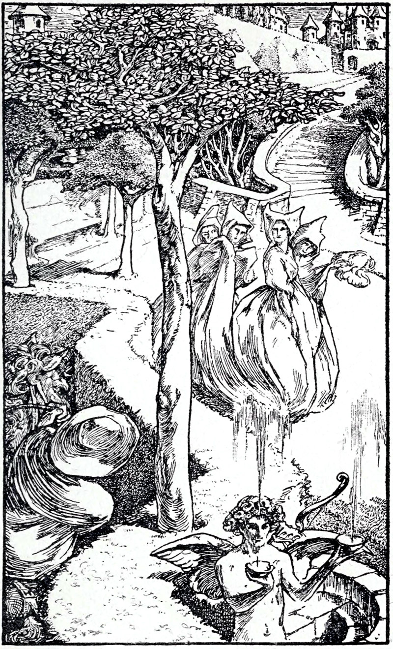 And now, as happens to all those who are captives of a crown, Nillywill learned that she must wed with one of her own rank who was a stranger to her save for his name and his renown as the lord of a neighbouring country; there was no help for her, since she was a princess, but she must wed according to the claims of her station. When she heard of it, she went at nightfall to her pansies, all lying in their beds, and told them of her grief. They, awakened by her tears, lifted up their grave eyes and looked at her.