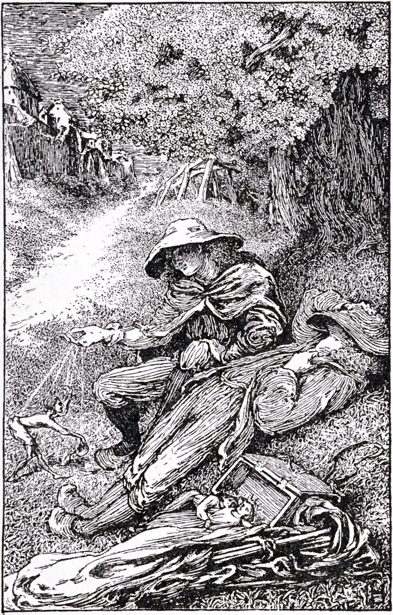 In his trouble he could think of only one possible remedy, and that he counted well over, knowing its risk. Away in the loneliest part of the forest there lived a wise woman, to whom, now and then, folk went for help when everything else had failed them. So he had heard tell of a certain Wishing-Pot that was hers in which people might see the thing they desired most, and into which for a fee she allowed lovers and other poor fools of fortune to look. One thing, however, was told against the virtues of this Wishing-Pot, that though many had had a sight of it, and their wishes revealed to them therein, others had gone and had never again returned to their homes, but had vanished altogether from men’s sight, nor had any news ever been heard of them after. There were some wise folk who held that they had only gone elsewhere to seek the fortune that the Wishing-Pot had shown to them. Nevertheless, for the most part, the wise woman and her Wishing-Pot had an ill name in that neighbourhood.