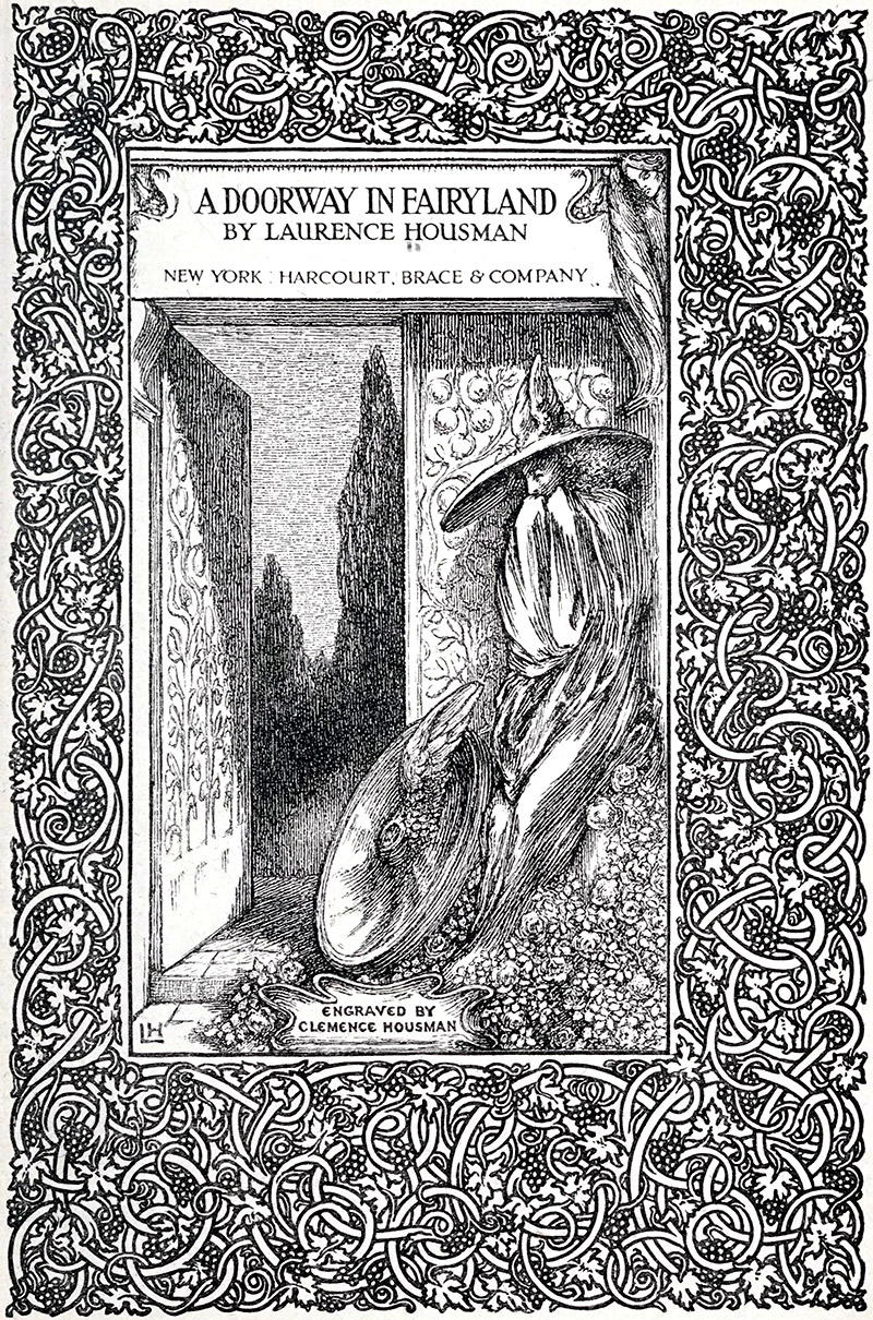 “I must be dreaming!” thought Knoonie for a way out of his distress. “It’s all one horrid dream which will come to an end just as the worst thing happens.” But the giant thistles came crowding close, reaching hungry hands at him. He caught hold of the knocker, and dragging himself up was able in his terror to force open the wicket, and work his small body through, just as the first thistle caught him by the leg. He escaped shoeless and with all his hose torn into ribands from the knee. Inside he came upon his father, sitting in his accustomed niche, keys in hand, sitting quite still with head bent and closed eyes.