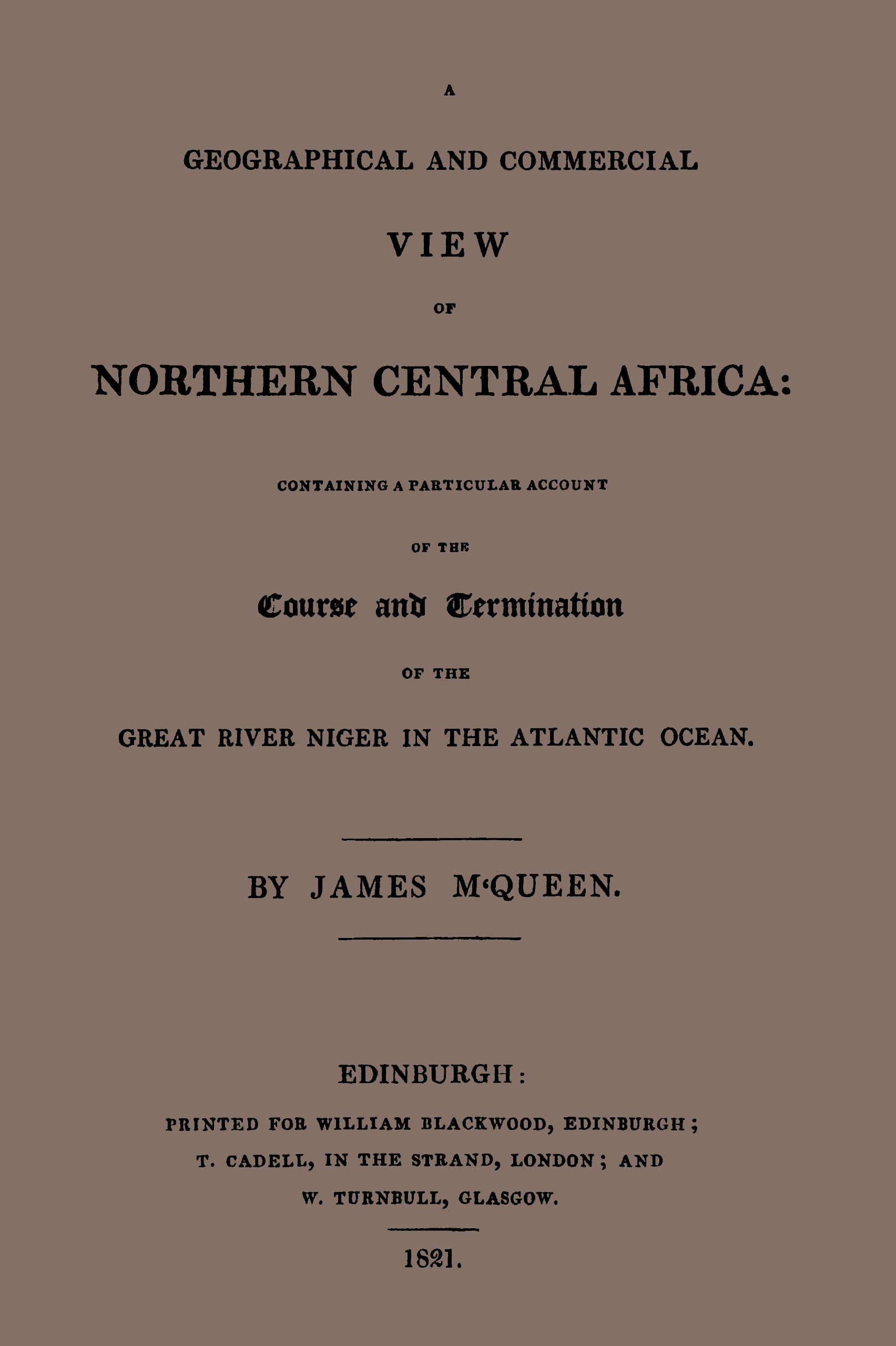 The central parts of Africa, and, in a very particular manner, the interior parts of the northern division of that great continent, together with the course and termination of the great river Niger, are still in a great measure unknown. Become the eager object of European research, these cannot much longer remain hid. It is surprising they have remained undiscovered so long. To explore and determine accurately these important points, is the most interesting geographical problem that now remains to be solved.