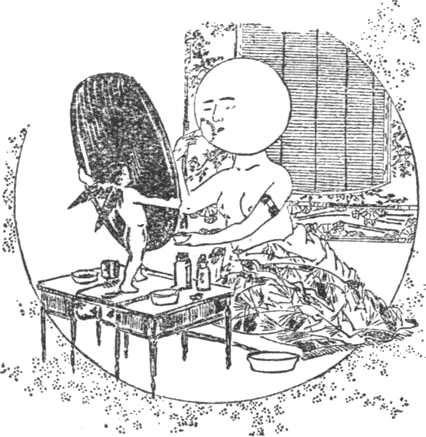 A japánságnak szinte megmerevült jellemvonása az előzékeny viselkedés, a megszabott formaságokhoz kötött udvariasság, mozdulataik kimértsége és lelki adottságuk látható megnyilvánulásakép, a hiressé vált japán mosoly. És e mosoly magvát már a gyermekélet lelkébe kezdik elültetni és tudatosan beléjük nevelni; akár csak az arra érdemesek előtt való mély meghajlást, a nagyrabecsülésből eredő arcraborulást és az örvendezés jelekép a levegőnek a szájüregbe való beszippantgatását. A mosolygó arc kelleti magát, a komorkodó arc kelletlenkedő; az előbbit mutatni, az utóbbit pedig leplezni szinte emberbaráti és társadalmi kötelesség. -8-