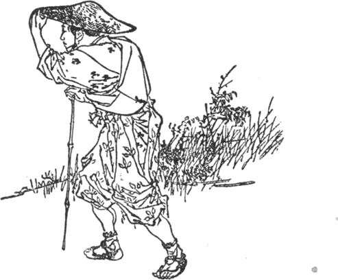 Jámbor öreg Nagahide fogja botját, vállra veti hátizsákját, lépked lassan, óvatosan és útjában hol meginog, hol megroggyan. Lohol, baktat ágas-bogas erdő felé s odaér egy csörgedező, messze kéklő patak elé. Fáradt testtel, szomjú ajkkal, görnyedező vén vállakkal, megpihen hűs vize partján, elandalog kéklő habján.