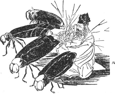 Megint meg-megeregeti, fonálkáját újból meg-meglibegteti és amint száll nagy irombán, kezét, lábát ijesztően lóbálgatván, fut egy felhő, száll egy szellő, megragadja Tűz-Sárkánykát és a szélét és a hosszát jól megrázza, megforgatja és egy fához, legcsúcsához odacsapja.