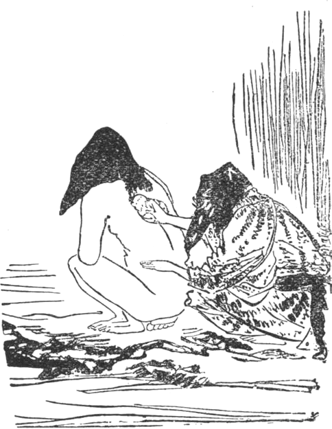 Faluvégi kis kunyhóból, rozogácska vityillóból előkukkan jámbor öreg Nagahide, kivánszorog ráncos arcú, petyhüdt ajkú felesége.