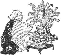 Ebből a japán néplélekből virult elő érzékeny eszmeviláguknak népköltésekbeli varázskertje. És a mókaszó bohókás Istenalakja, a groteszk megjelenésű bálványarc, természeti -10- jelenségeknek megannyi szellemei, apróbbrendű Istenkék, emberi gyarlóságok forgatába sodródnak, virágok pompázó kelyhei között bujkálnak, állati meg növényi palástot öltenek magukra és bűvösen bogozgatják az ezerszínű meseszálak szivárványos szövevényeit. Mimózák sárgás fejecskéi hajladoznak egymáshoz, krizántémok bársonyos sziromkái sugdolóznak össze, cseresznyevirágok hegyezgetik színes kelyheiket és szilvalombok hamvas gyümölcsein a vidámság harmatcseppjei csillámlanak. Szimbólumokká finomodnak az események és nyomukban a bűnhődés vagy a jutalom, a kijózanodó okulás és a kesernyésízű kárvallás. Akár az aesopusi mesék ostor-suhintása, olyasféle a japán osztó igazságnak bambuszcsapása. Mély sebet nem okoz, de sajog, véreset nem vérzik, de fájóra dagad. Hol mosolyognak sorsukon, hol siránkoznak rajta és a magábaszállás megbánó könnyein a megnyugvás derűje szűrődik keresztül.
