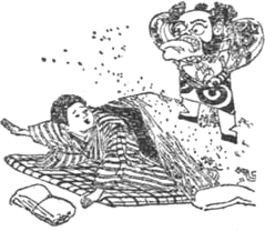 Buddha oltáránál áldoztak volt éppen s amint márványlépcsőn fölfelé menőben, undokarcú ördög -20- útjukat elállja, bődületes hangon magát elkiáltja. Futni kezd a lányka, ám a bátor törpe, nekiszegzi lábát: