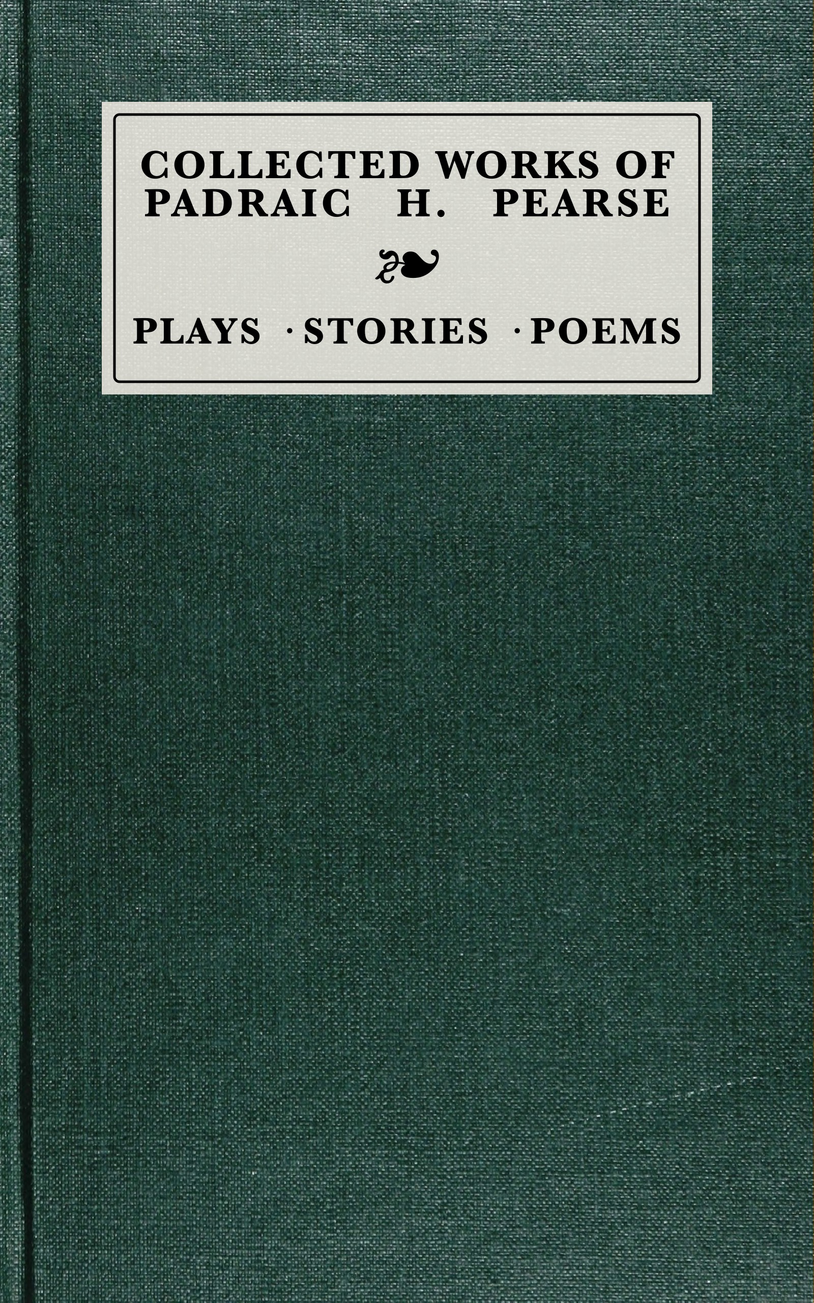 This volume of the Collected Works of Padraic Pearse contains his English Versions of Plays and Poems, many of which have not been previously published. The Author’s final copies of the manuscripts of The Singer and The Master were burnt in the Publisher’s office at Easter, 1916, but, fortunately, other copies of these manuscripts, apparently containing the Author’s corrections, were forthcoming. On page 35 of The Singer, there was one page of manuscript missing which evidently contained dialogue covering the exit of MacDara and the entrance of Diarmaid, and it seemed better to leave a blank here than to have the missing speeches written by another hand. Towards the end of this play there were some pages of manuscript giving a slightly different version, and it was difficult to say whether this version was an earlier or later one than the manuscript which has been followed. This fragment has been printed as an Appendix.