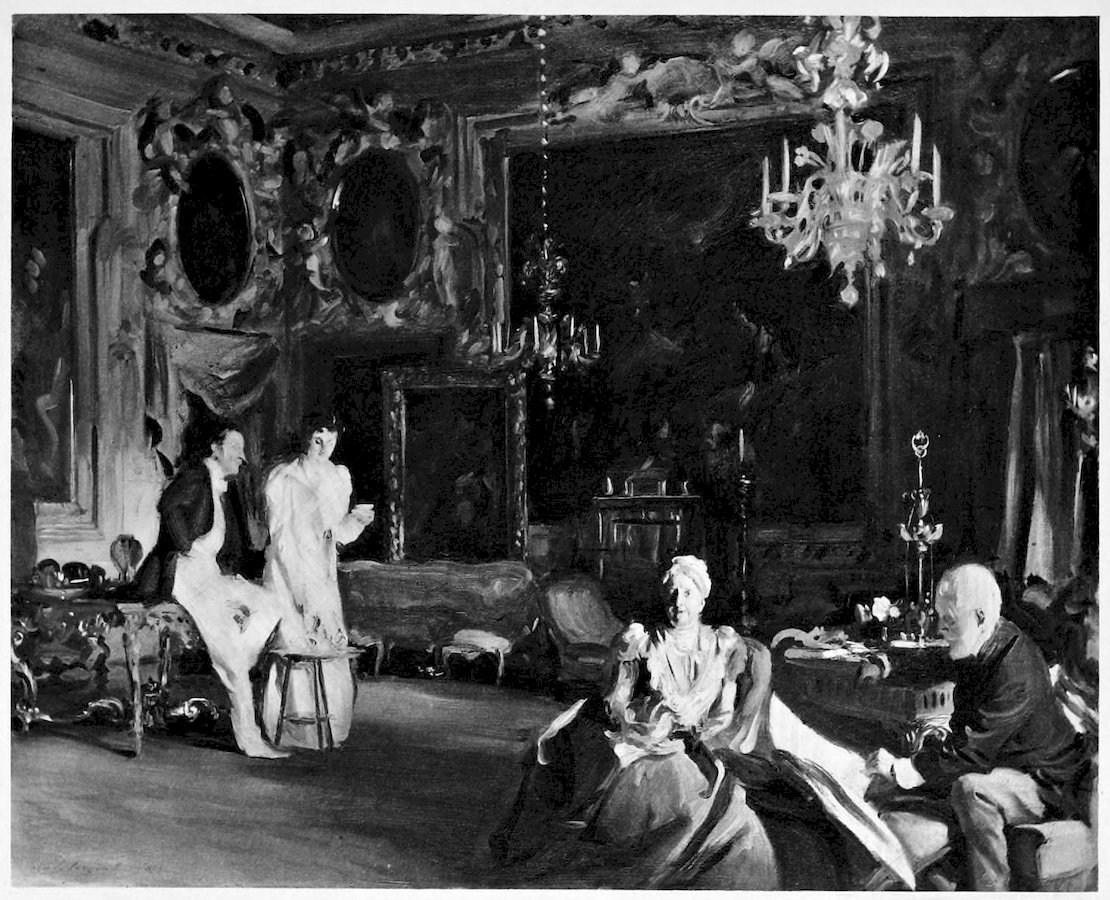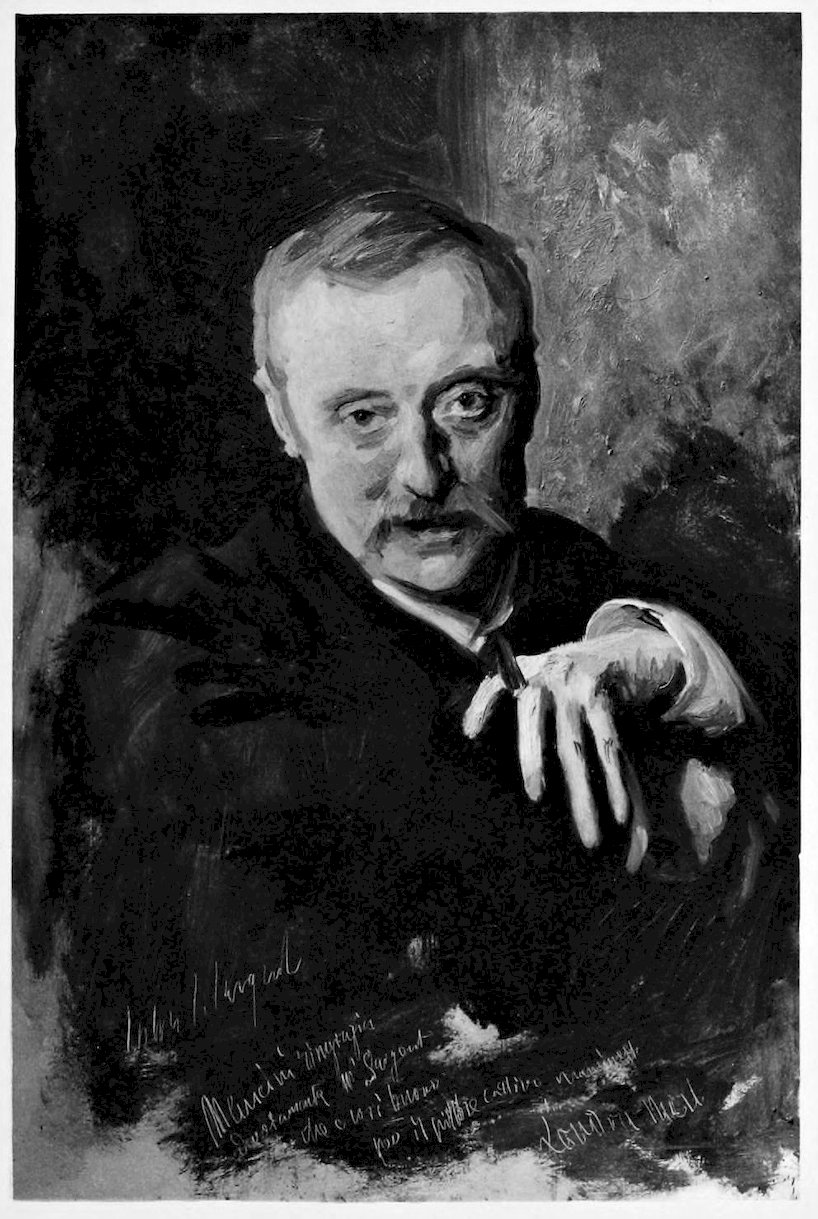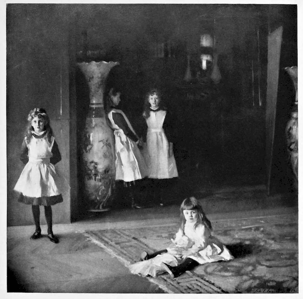 In the case of Mr. Sargent one supreme quality is so evident and so all-intelligible, that his work could never be neglected. It is a quality for all eyes and all intelligences. “The many cannot miss his meaning,” said James Russell Lowell of his own great contemporary author, “and only the few can find it.” The many cannot miss the life of Mr. Sargent’s painting, if the masterly method that brings that life to light is for students only to understand, or even only for painters. It is not necessary that the laity should know much of this; and so much said about “technique” outside of the studios is surely little to the purpose. The artist does not join in the prattle with a public that is better employed in simple appreciation. Every art and craft has its methods for its own use. There must, for example, be much technique in the safe driving of a cab in Piccadilly, and assuredly we admire, and we trust and we profit: but the cabman keeps his technique to himself and makes no appeal whatever to his “fare”, does not ask that client to understand him. One professor only—the playwriter—seems inclined to cry out about his troubles—the difficulty of composing his scenes. If our friends in front did but know, he cries in effect, how exceedingly difficult it is to arrange these things, they would not complain of a tedious fore-scene; so much has to be doing behind; pray, a little more patience and technique! There is, however, more dignity in keeping separate places.