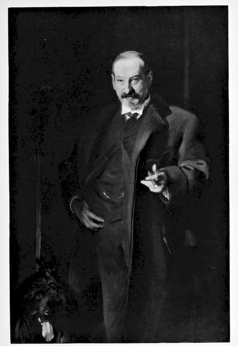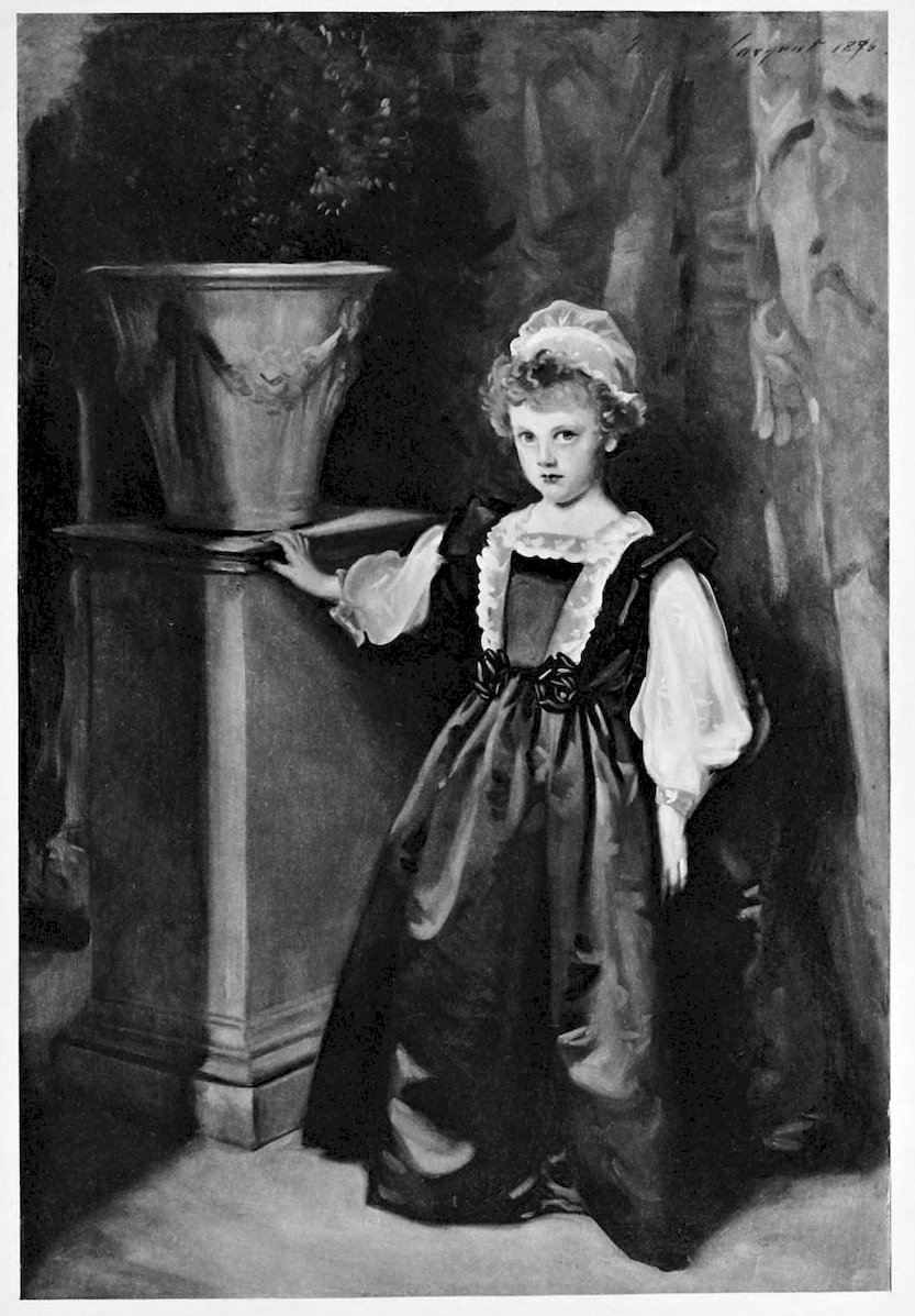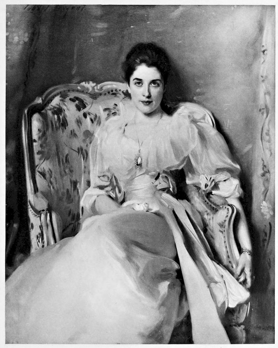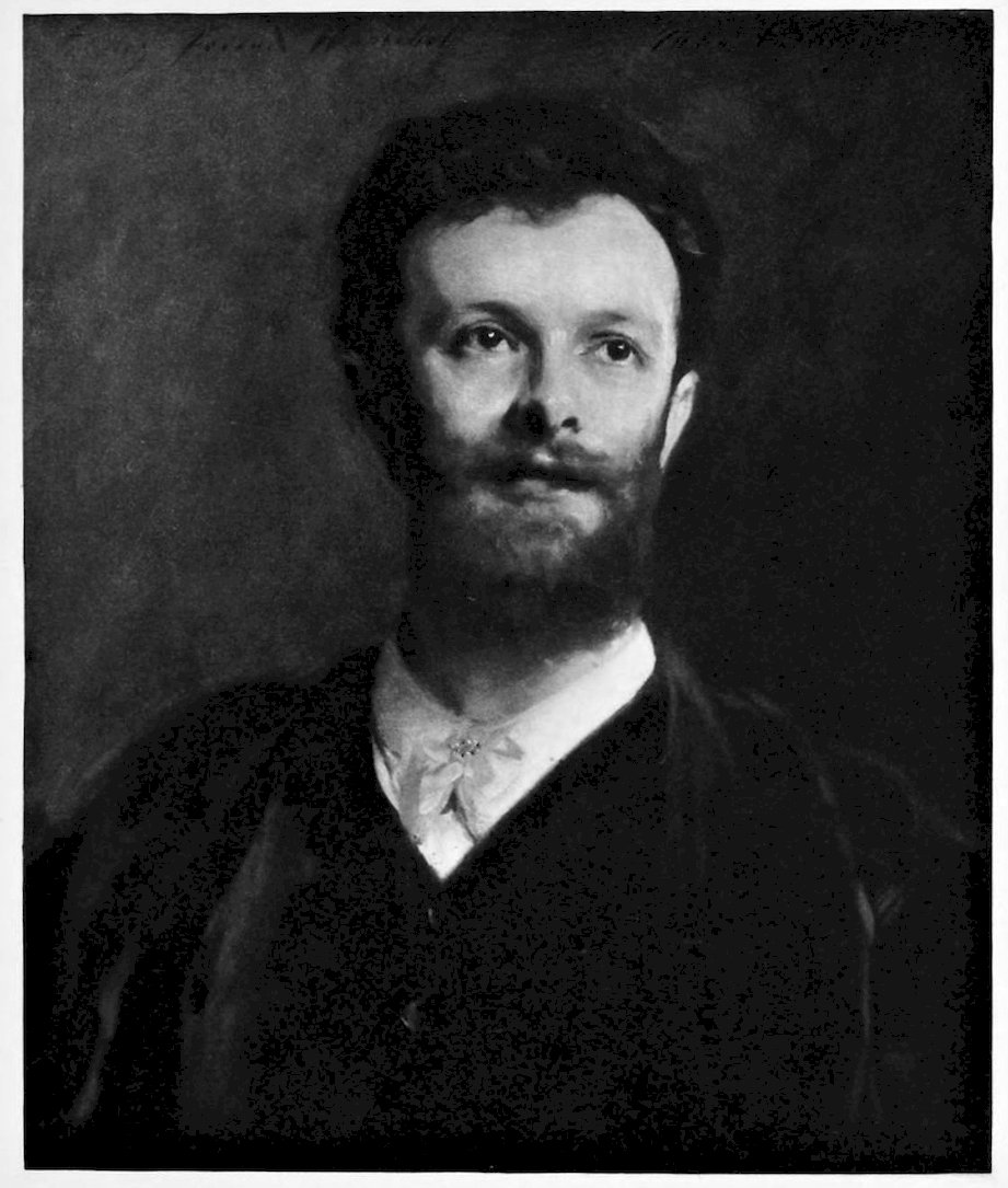 We spectators can hardly be anything else than ignorant, even with a smattering—ignorant of the art of the painter. A certain education, as has been said, makes us able to see well, and that is our art and needs our attention. It is our contribution, and we owe it. Life, light, form, and colour in a picture, and indeed in nature, must have our intelligent eyes; but there is something transcendent in the power of him who shows us the great quality of life so plainly that the simplest of us cannot but see. The life of Mr. Sargent’s portraits is so much more than the trivial vivacity which takes a careless eye, it is so truly vitality, that the eye meeting it, though it may be simple, must not be silly, must not be vulgar. Therefore when the comments of an English crowd seem dull to the listener, as they do, that crowd seems yet to retrieve itself, and makes no small amends, even at the Royal Academy, by generally saying of a splendid Sargent that it has life. As for colour, the love of it is with the greater number of us, but it needs definite education. Mr. Sargent is not distinctively a colourist, although he has truly exquisite colour, whether in his wonderful flesh, or in his whole system of shadows, or in some beautiful blue of a decorative sky. But I think a painter who is more distinctively a colourist pauses upon the colour of a shadow, for example, as Sargent does not seem to do. Rembrandt is called a chiaroscurist rather than a colourist, but he is surely proved a colourist also, by his dwelling upon the colour of some shadowed background. Mr. Sargent’s colour is rather something on the way to some beauty and truth of value and relation. Nature is full of passages of mystery, lapses of light and lapses of detail. A comparison is suggested to me of this beautiful “lost and found” in the shadowy world we see, with the momentary lapse of the lark’s song when we hear him sing at his height, and its momentary recovery. There are in all natural scenes under our vision a hundred opportunities for pausing on the beauty of these retreats; the painter visibly delights in them—the colourist chiefly for their colour. Mr. Sargent has not this delight passionately, though he has it most delicately, and we may suppose his chief felicity to be in perfect relations and in subtle modelling.