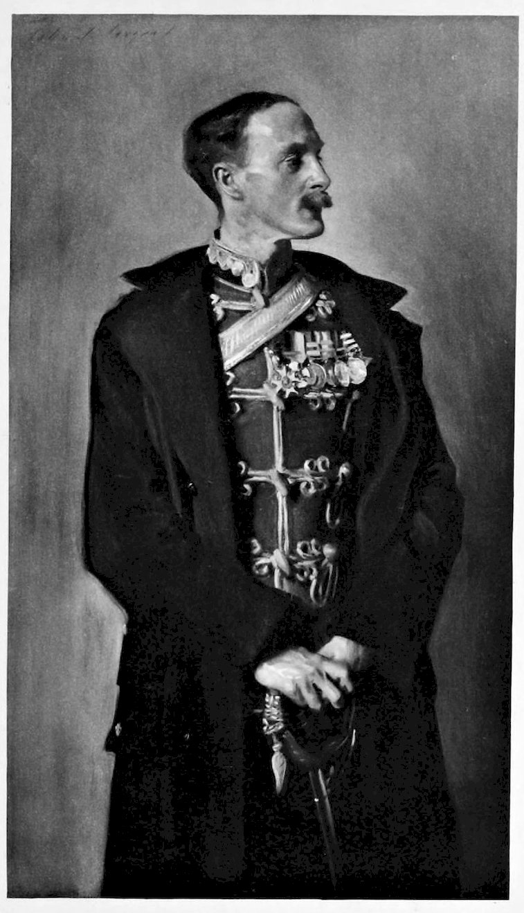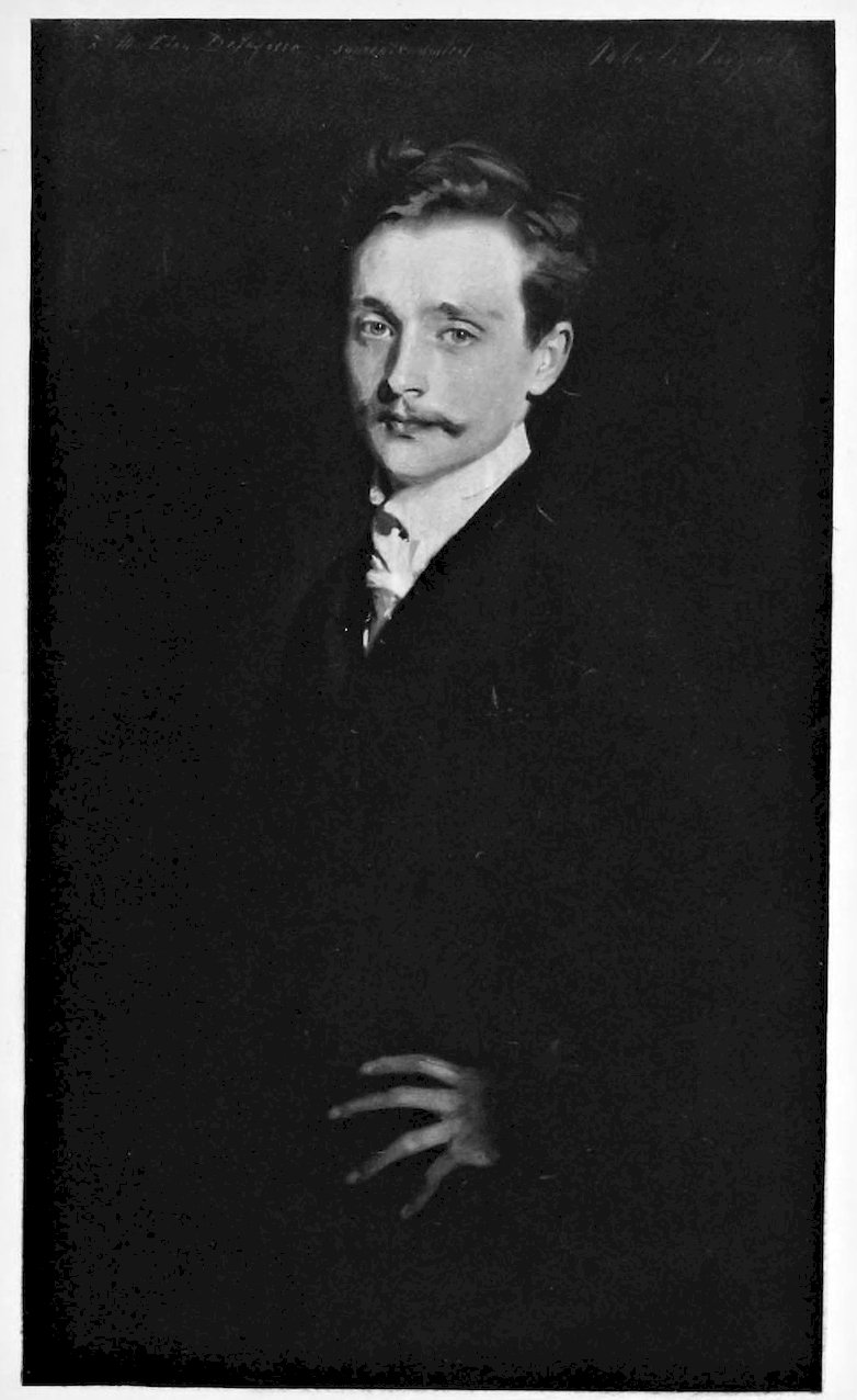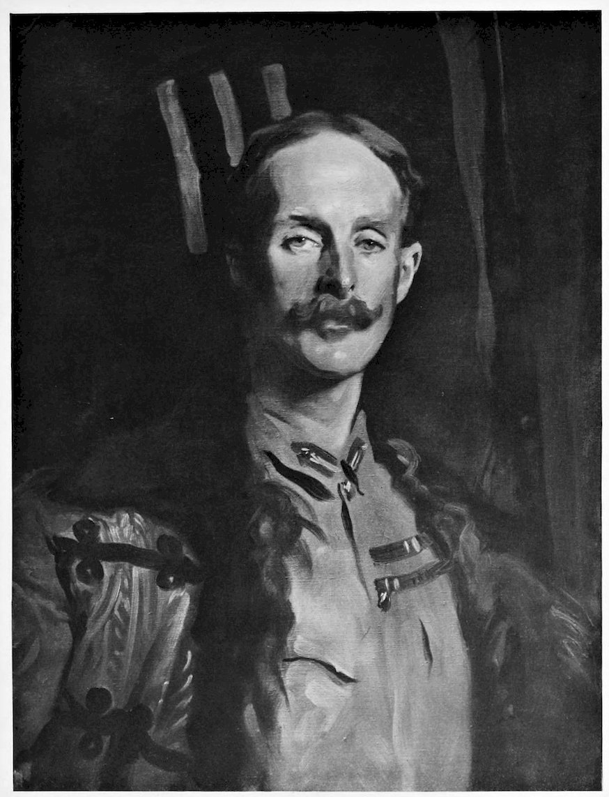 We spectators can hardly be anything else than ignorant, even with a smattering—ignorant of the art of the painter. A certain education, as has been said, makes us able to see well, and that is our art and needs our attention. It is our contribution, and we owe it. Life, light, form, and colour in a picture, and indeed in nature, must have our intelligent eyes; but there is something transcendent in the power of him who shows us the great quality of life so plainly that the simplest of us cannot but see. The life of Mr. Sargent’s portraits is so much more than the trivial vivacity which takes a careless eye, it is so truly vitality, that the eye meeting it, though it may be simple, must not be silly, must not be vulgar. Therefore when the comments of an English crowd seem dull to the listener, as they do, that crowd seems yet to retrieve itself, and makes no small amends, even at the Royal Academy, by generally saying of a splendid Sargent that it has life. As for colour, the love of it is with the greater number of us, but it needs definite education. Mr. Sargent is not distinctively a colourist, although he has truly exquisite colour, whether in his wonderful flesh, or in his whole system of shadows, or in some beautiful blue of a decorative sky. But I think a painter who is more distinctively a colourist pauses upon the colour of a shadow, for example, as Sargent does not seem to do. Rembrandt is called a chiaroscurist rather than a colourist, but he is surely proved a colourist also, by his dwelling upon the colour of some shadowed background. Mr. Sargent’s colour is rather something on the way to some beauty and truth of value and relation. Nature is full of passages of mystery, lapses of light and lapses of detail. A comparison is suggested to me of this beautiful “lost and found” in the shadowy world we see, with the momentary lapse of the lark’s song when we hear him sing at his height, and its momentary recovery. There are in all natural scenes under our vision a hundred opportunities for pausing on the beauty of these retreats; the painter visibly delights in them—the colourist chiefly for their colour. Mr. Sargent has not this delight passionately, though he has it most delicately, and we may suppose his chief felicity to be in perfect relations and in subtle modelling.
