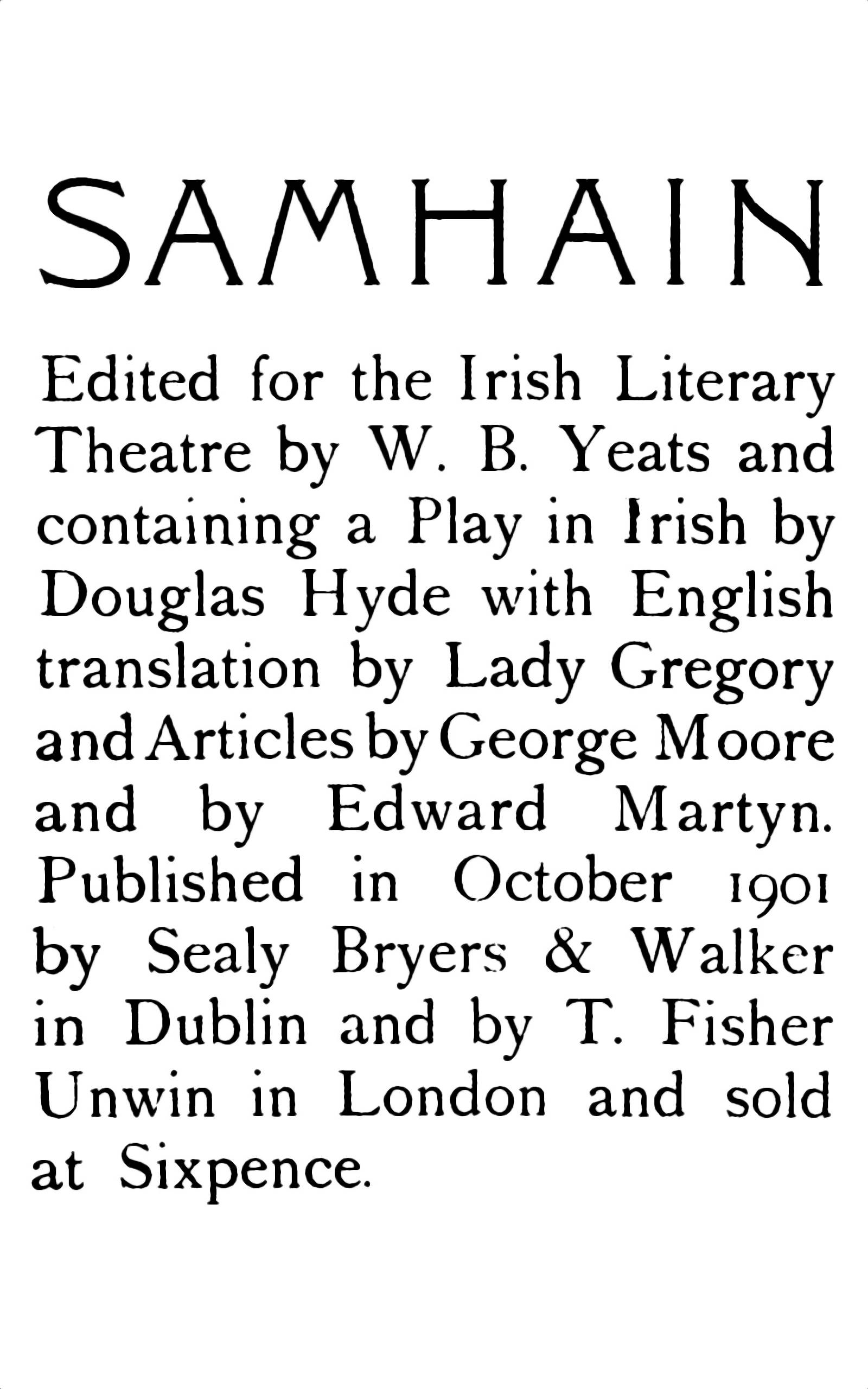 Title: Samhain, Issue 1, October 1901