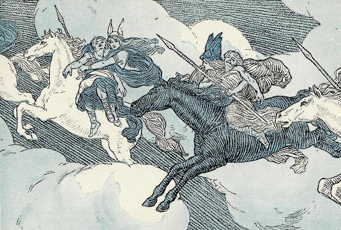 Brunhilde's horse awoke and neighed his glad call.