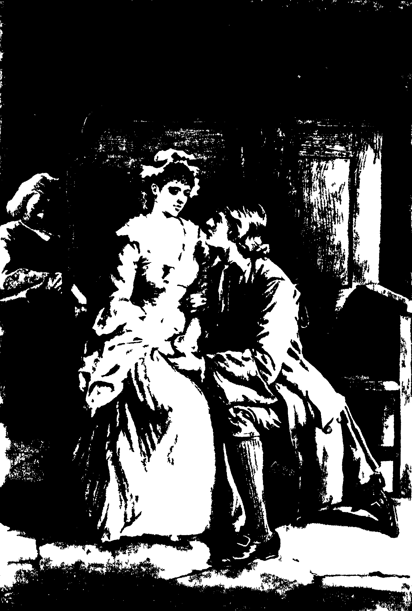 Adams had been ruminating all this time on a passage in Aeschylus, without attending in the least to the voice, though one of the most melodious that ever was heard, when, casting his eyes on Fanny, he cried out, "Bless us, you look extremely pale!"—"Pale! Mr Adams," says she; "O Jesus!" and fell backwards in her chair. Adams jumped up, flung his Aeschylus into the fire, and fell a-roaring to the people of the house for help. He soon summoned every one into the room, and the songster among the rest; but, O reader! when this nightingale, who was no other than Joseph Andrews himself, saw his beloved Fanny in the situation we have described her, canst thou conceive the agitations of his mind? If thou canst not, waive that meditation to behold his happiness, when, clasping her in his arms, he found life and blood returning into her cheeks: when he saw her open her beloved eyes, and heard her with the softest accent whisper, "Are you Joseph Andrews?"—"Art thou my Fanny?" he answered eagerly: and, pulling her to his heart, he imprinted numberless kisses on her lips, without considering who were present.