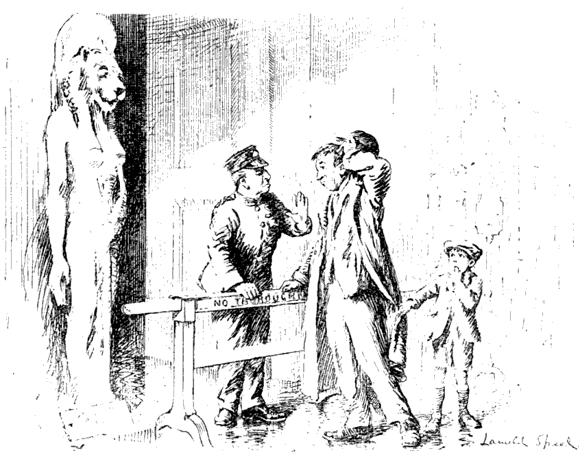 British Museum Official. "No, you can't get into the Mummy Gallery. The Government officials are still there."