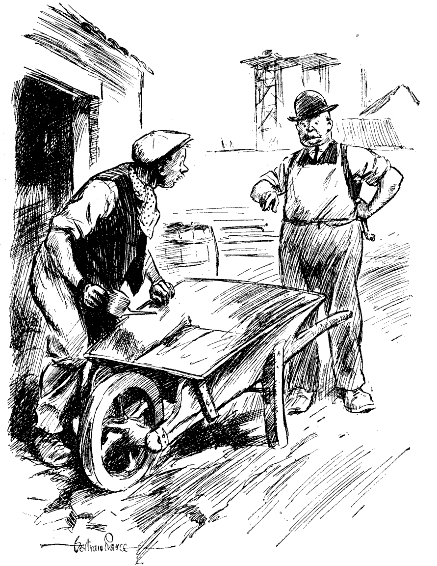 New Hand. "Oilin' the wheelbarrow."