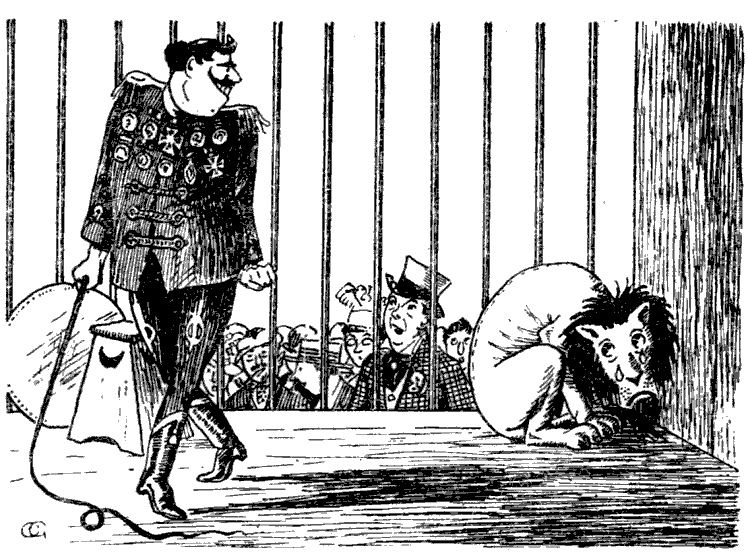 Showman. "Don't get him too tame, Professor. He's got to go five rounds with the boxing kangaroo when you've finished."